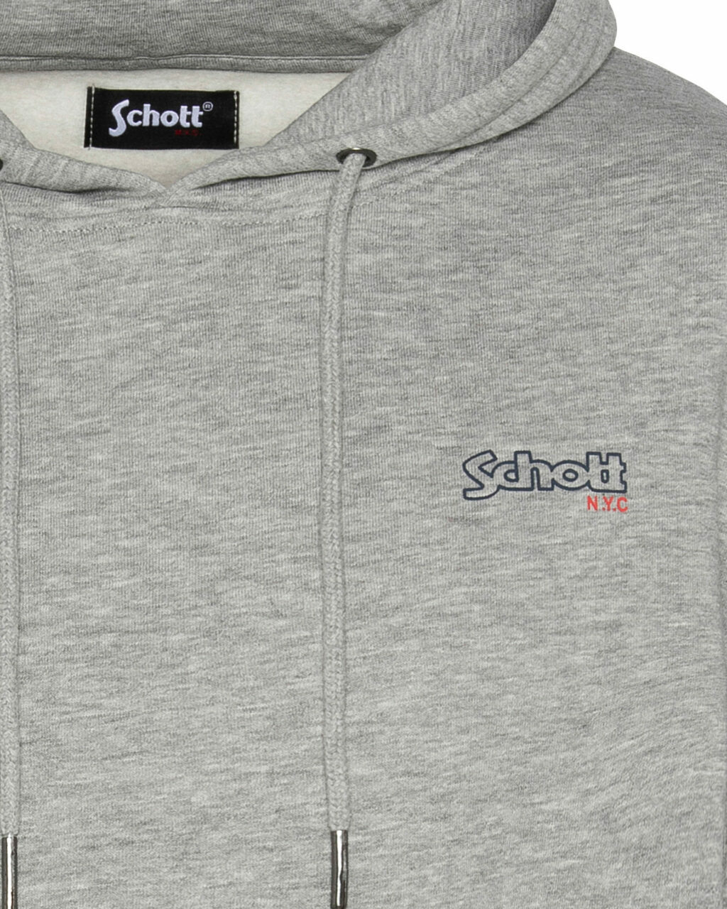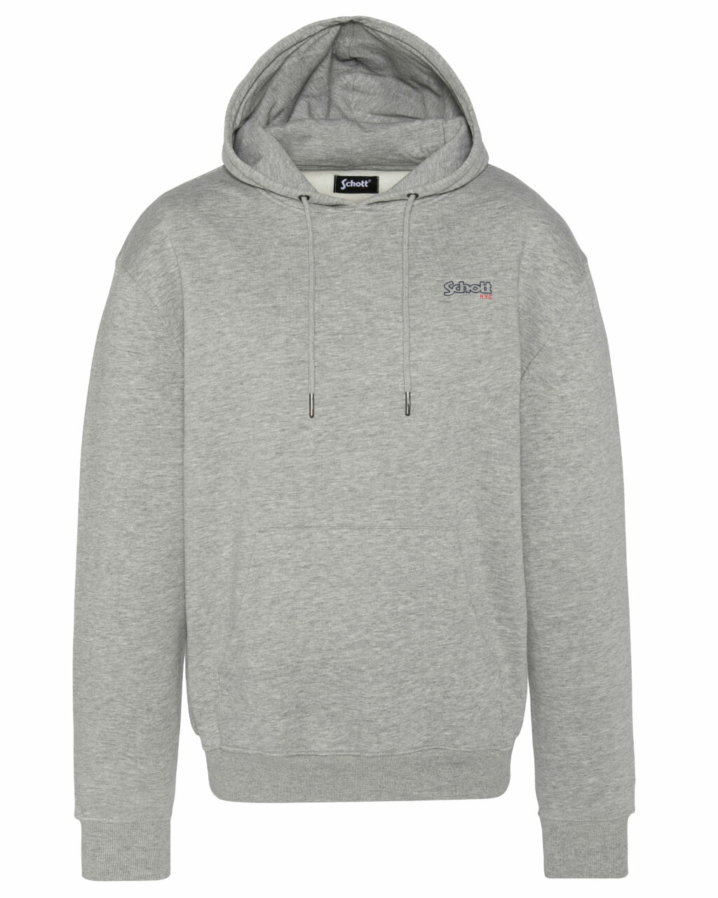Matière : 80 % coton, 20 % polyester. Coupe droite confortable. Capuche doublée avec cordon de serrage. Poche kangourou frontale. Finitions bord-côte aux poignets et à la base. Logo Schott NYC brodé sur la poitrine.
