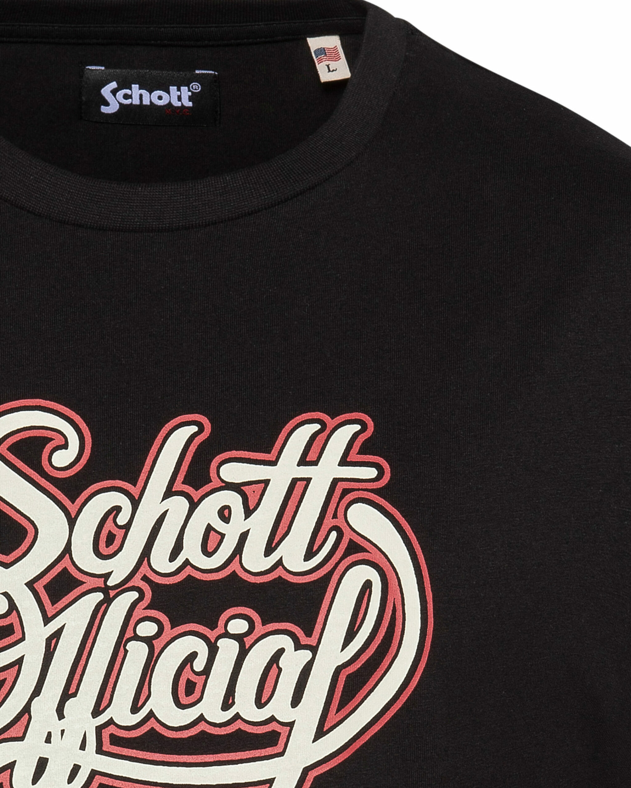 100 % coton pour un toucher naturel et une excellente tenue. Col rond et manches courtes pour un style intemporel. Grand imprimé poitrine Schott Official, signature visible et tendance. Coupe droite, facile à porter et à intégrer dans toutes vos tenues.