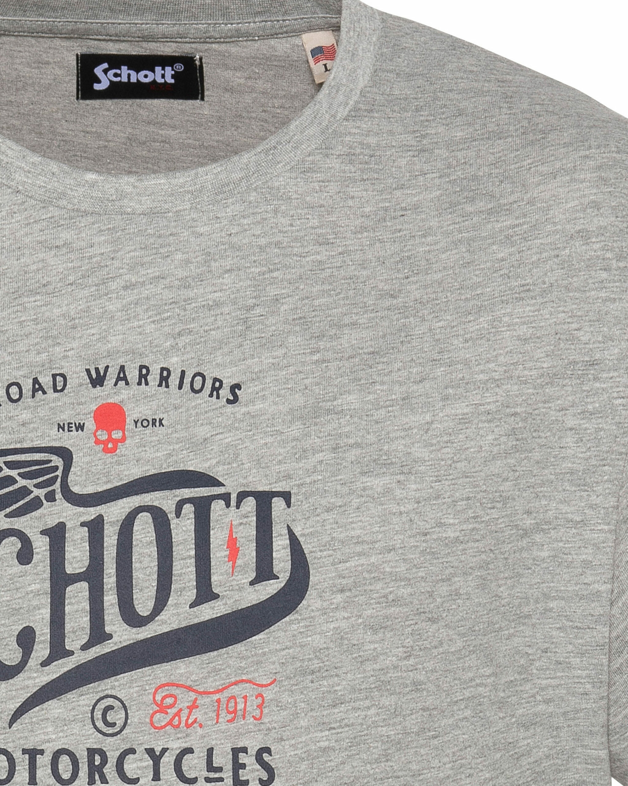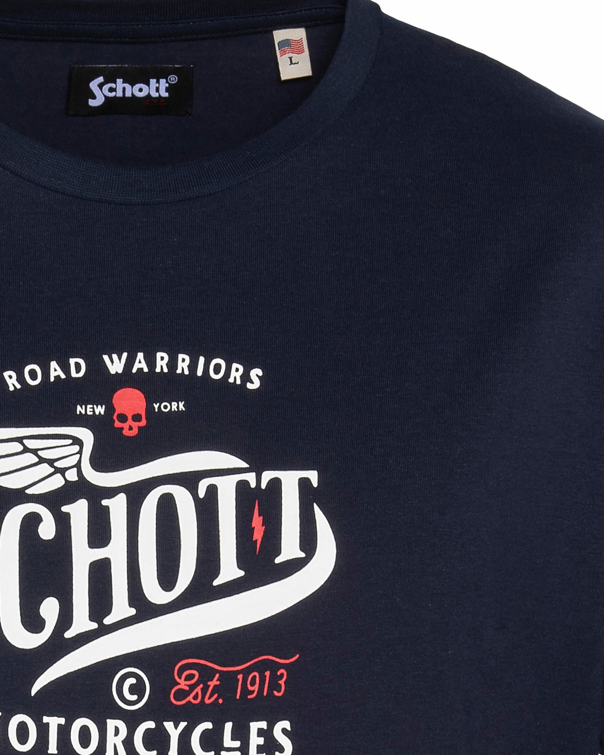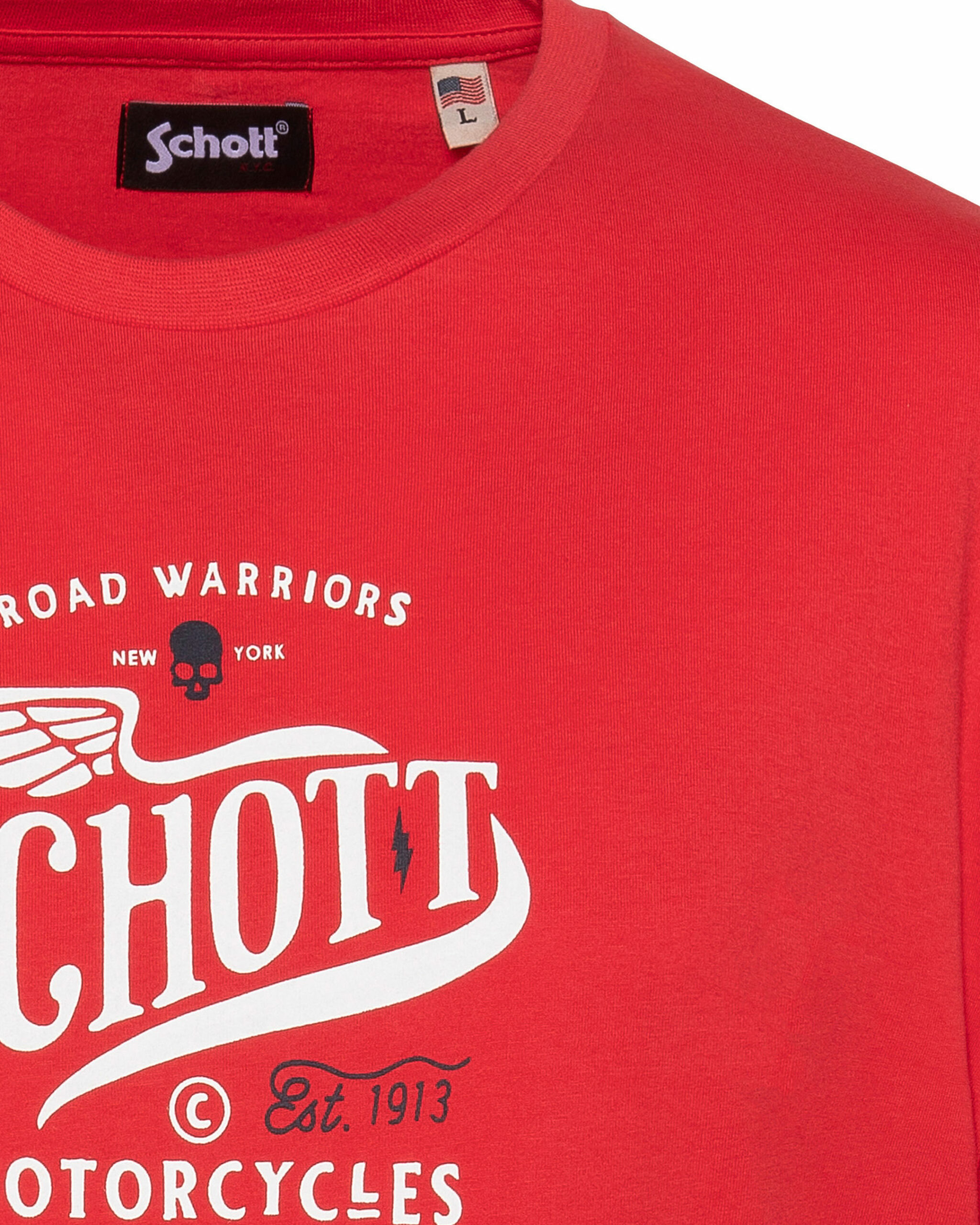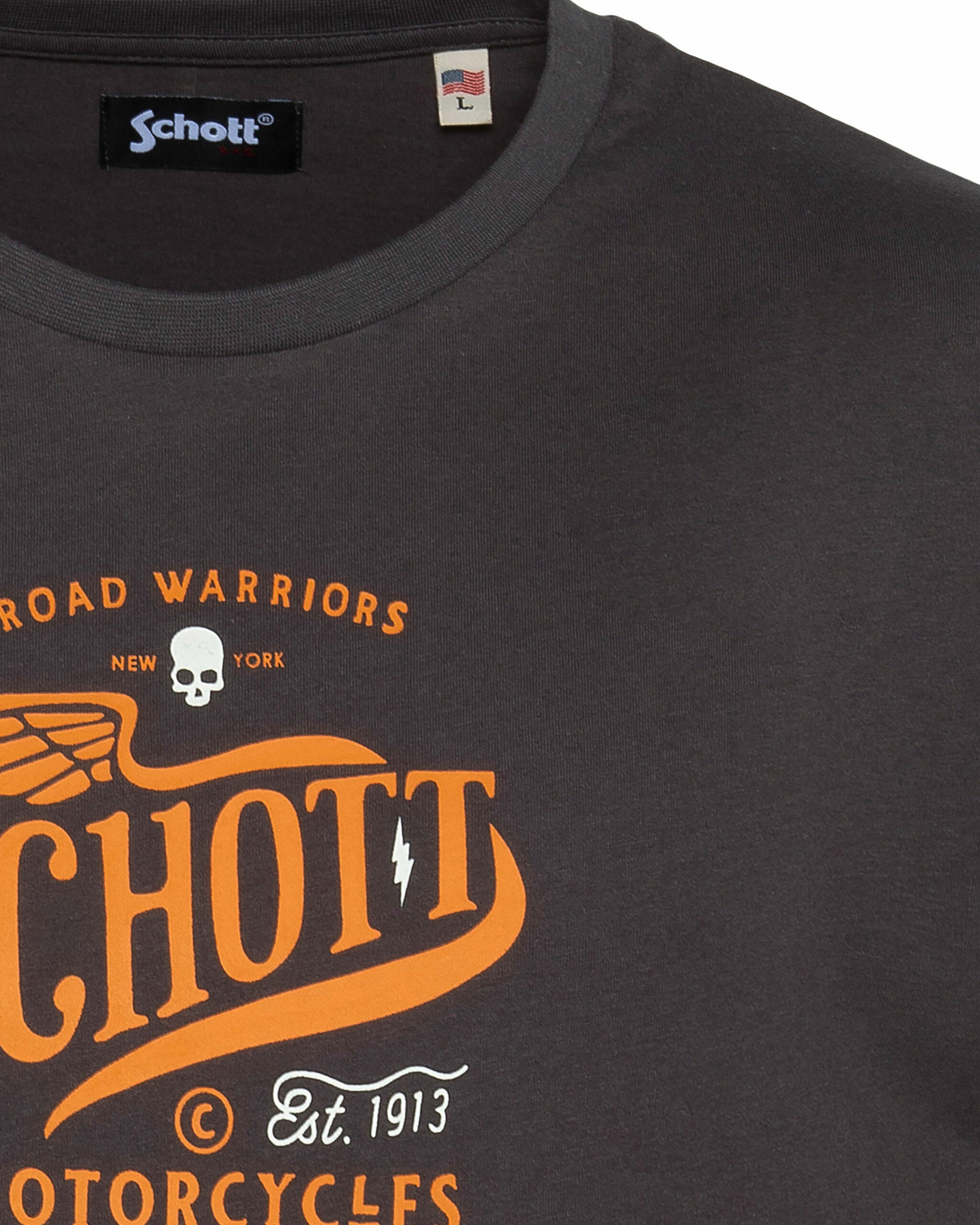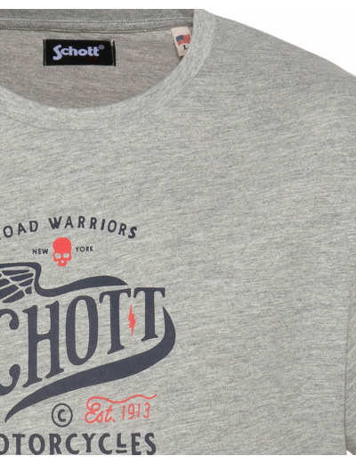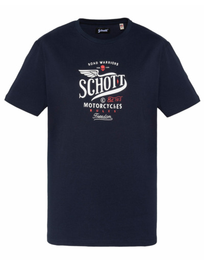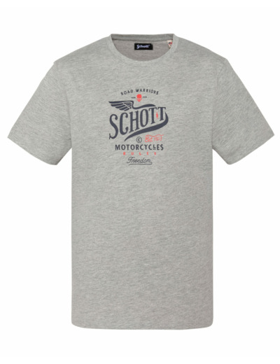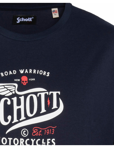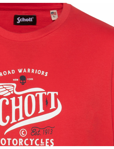 Matière 100 % coton, manches courtes, col rond, imprimé poitrine exclusif Schott NYC. Coupe droite, facile à porter au quotidien.