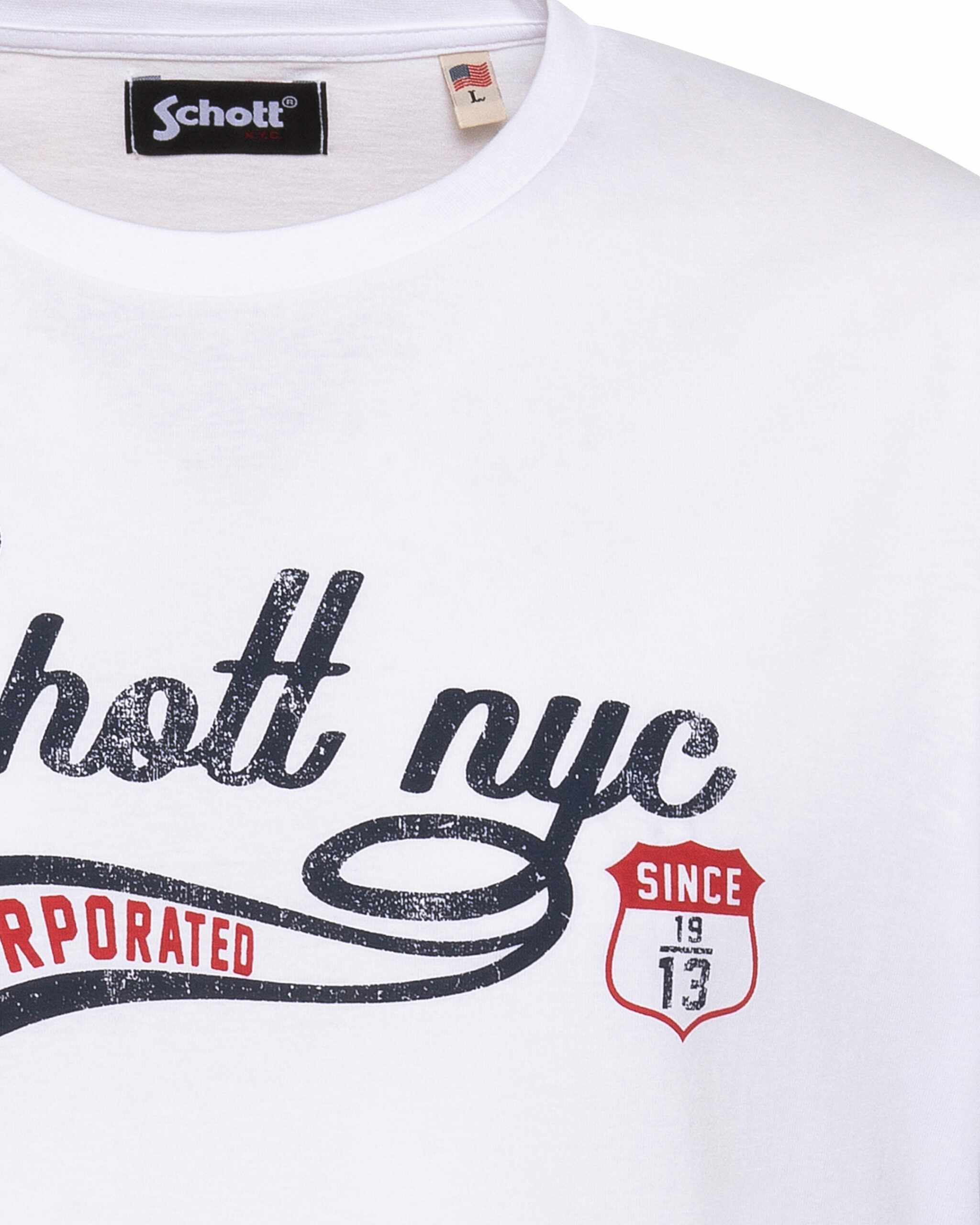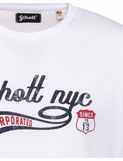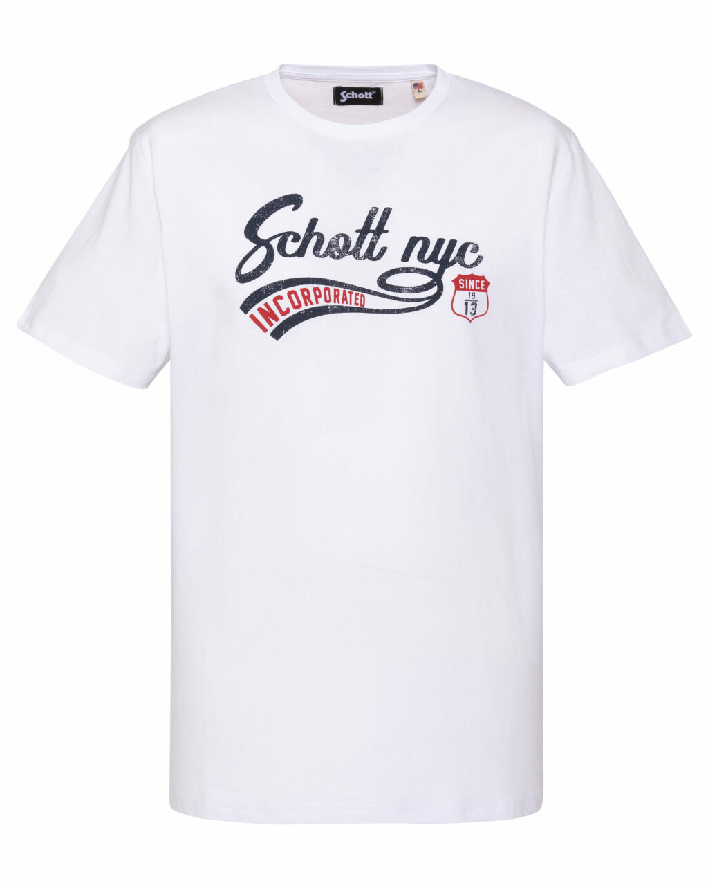 Matière : 100 % coton. Coupe droite avec col rond et manches courtes. Imprimé poitrine distinctif Schott NYC Incorporated Since 1913. Facile à entretenir, idéal pour un usage quotidien.
