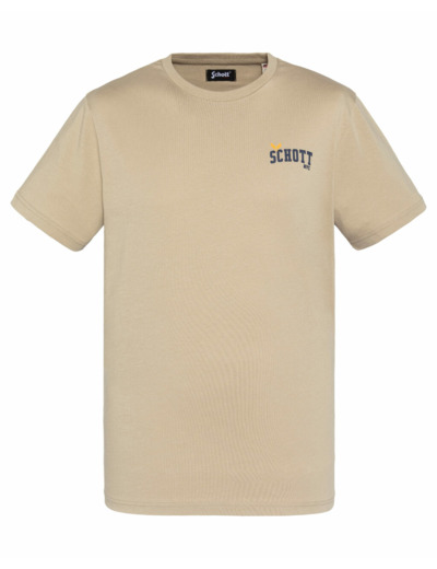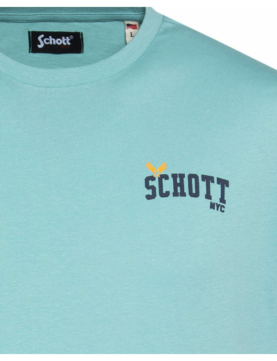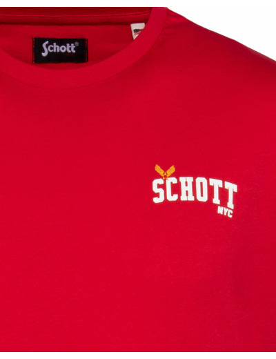 Logo Schott NYC sérigraphié sur la poitrine, col rond, manches courtes, coutures renforcées, tissu doux et respirant, coupe classique adaptée à toutes les morphologies.