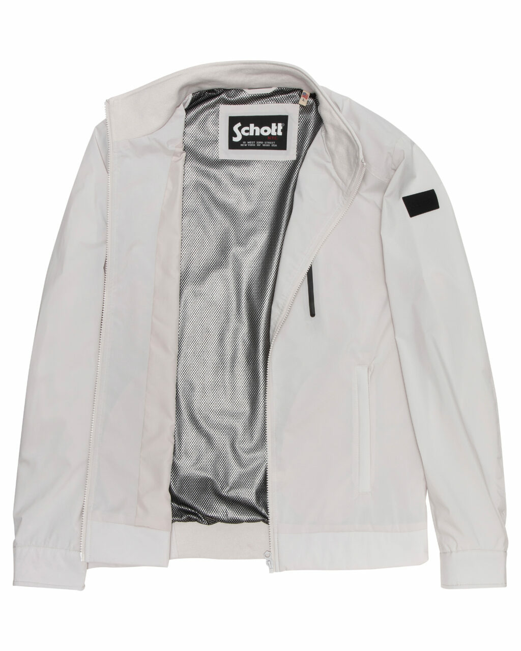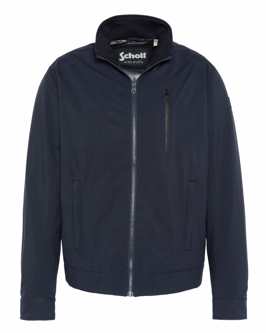 Conçue pour allier praticité et style, cette veste légère dispose d’une fermeture zippée centrale facile à manipuler, de poches latérales discrètes et d’une poche poitrine zippée étanche pour garder vos essentiels en sécurité. Le badge rubber Schott NYC sur la manche gauche affirme l’authenticité de la marque sans excès.