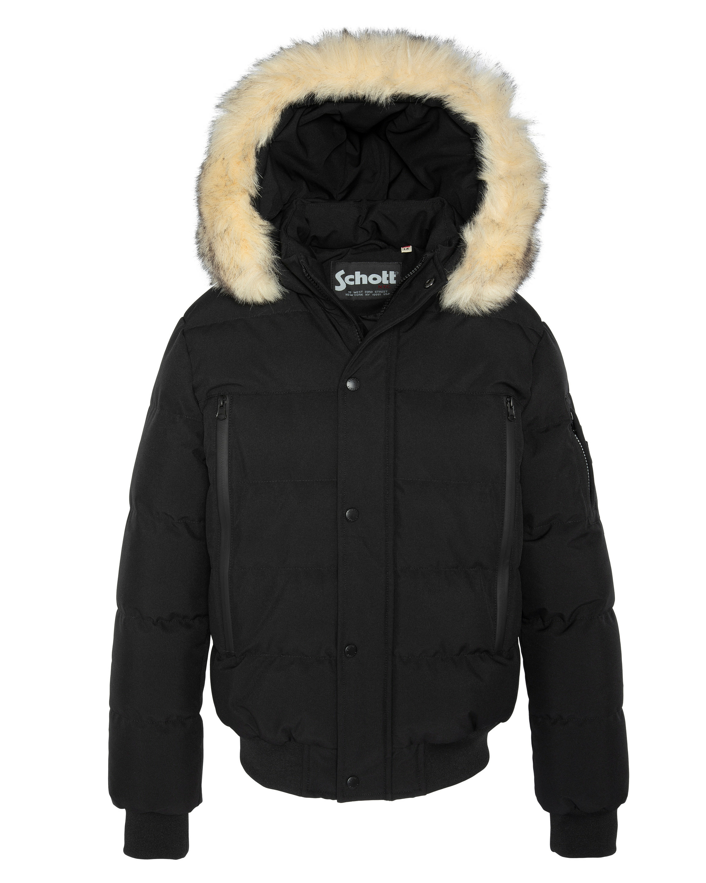 Attention, les articles de la marque taillent petit, réfèrez-vous à notre guide des taillesAffrontez l’hiver avec style grâce au blouson à capuche Schott NYC. Alliant modernité et fonctionnalité, il s’impose comme un incontournable de votre garde-robe.
