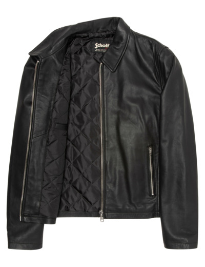 Confectionné en cuir d’agneau lisse et souple, ce blouson offre une silhouette épurée grâce à ses lignes minimalistes et sa coupe standard. Son col chemise et sa fermeture zippée renforcent son côté pratique, tandis que les finitions soignées aux poignets et à la base garantissent une tenue impeccable. Polyvalent, il s’adapte aussi bien à un look décontracté qu’à une tenue plus habillée.