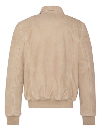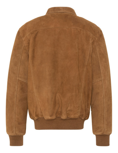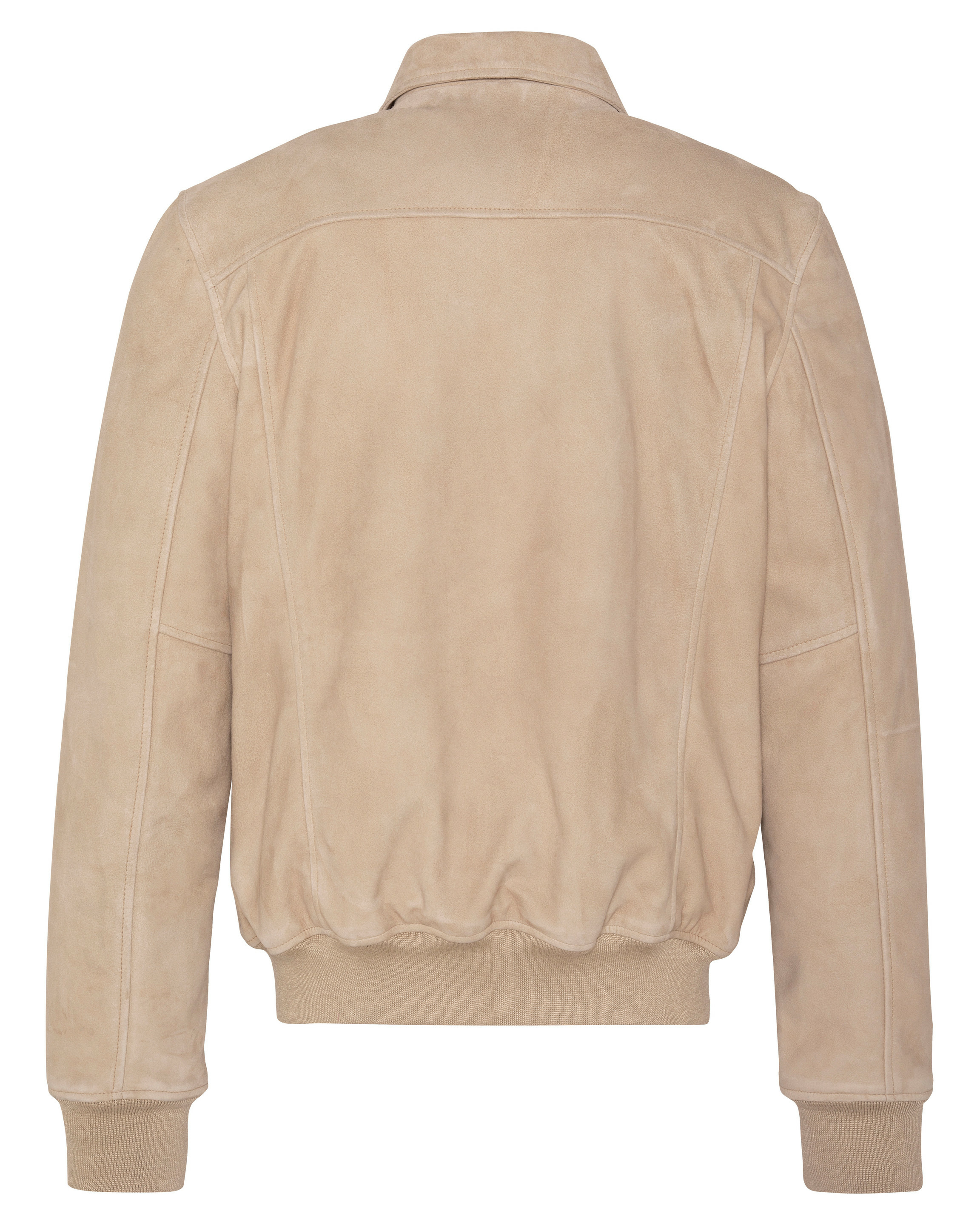 Confectionné dans un cuir suédé doux au toucher, ce blouson présente un col chemise classique et une fermeture zippée robuste. Ses lignes épurées et surpiqûres apparentes soulignent une finition soignée, tandis que les bord-côte aux poignets et à la taille assurent un maintien parfait. Pratique, il dispose de deux poches basses zippées et de deux poches intérieures pour garder vos essentiels à portée de main.