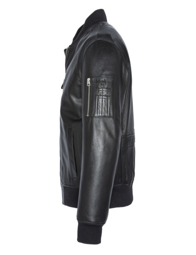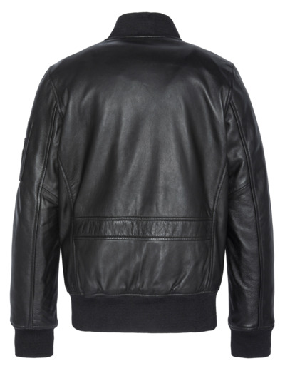 Fabriquée en cuir d’agneau (lambskin leather), cette veste présente une fermeture zippée, deux poches basses, une poche sur la manche gauche, et des finitions en bord côte au niveau du col, des poignets et de la taille. Entretien spécialisé recommandé : nettoyage uniquement par un professionnel du cuir, sans lavage, blanchiment, séchage en machine, repassage ni nettoyage à sec.
