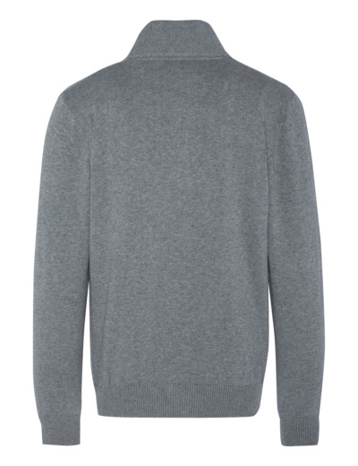 Fermeture zippée, logo brodé poitrine, deux poches latérales, bord côte au col, poignets et taille. Composition 100% coton. Lavage à 30° en cycle délicat ou laine, sans blanchiment ni sèche-linge. Séchage à plat et repassage doux recommandés. Pas de nettoyage à sec.