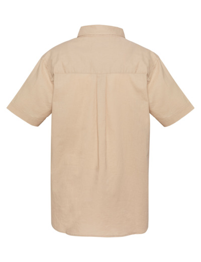 Fermeture boutonnée, col à pointes boutonnées, une poche poitrine plaquée. Composition : 75% coton, 25% lin. Entretien : lavage à 30°, blanchiment interdit, pas de sèche-linge, repassage doux, pas de nettoyage à sec, laver séparément.