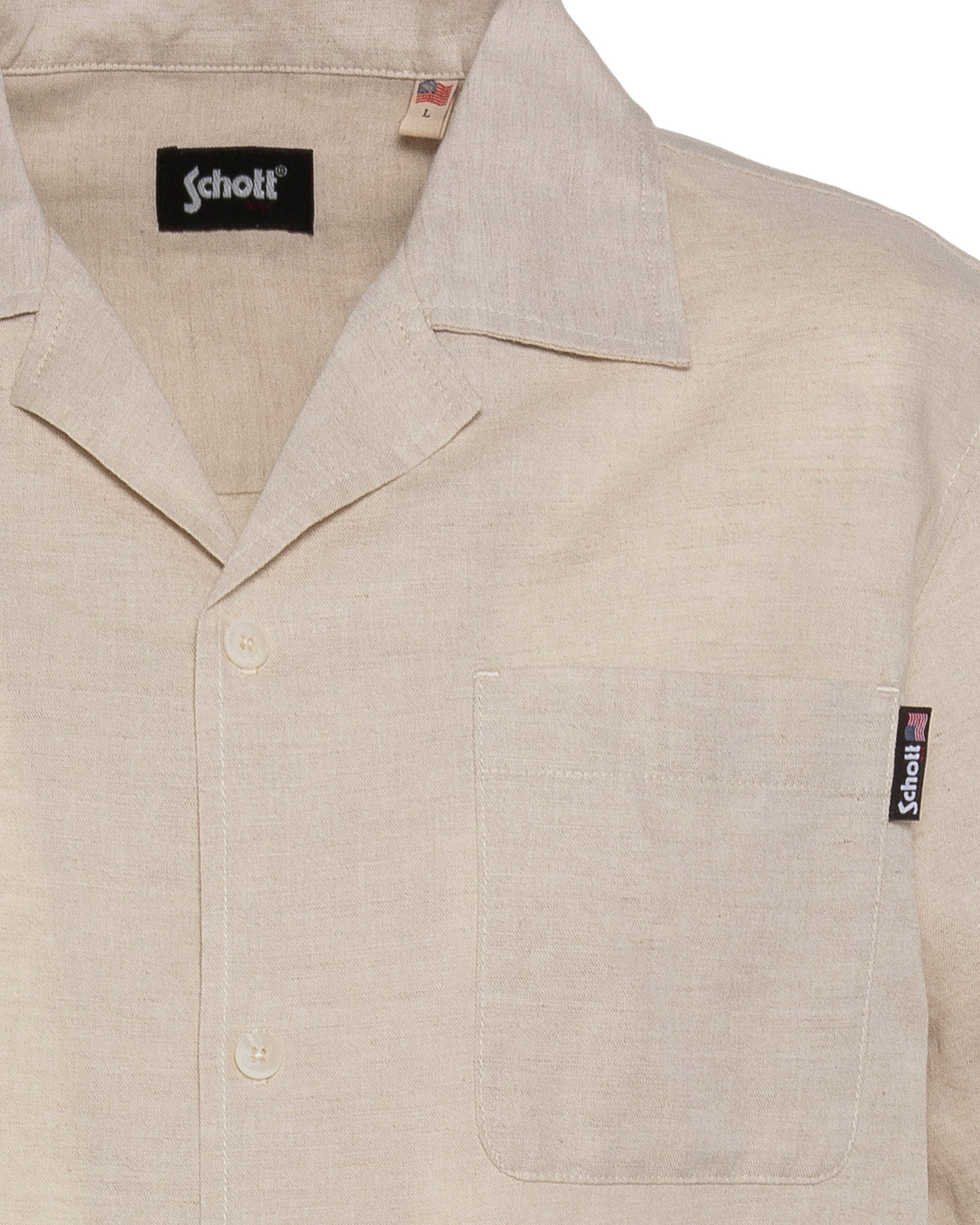 Attention, les articles de la marque taillent petit, réfèrez-vous à notre guide des taillesAdoptez l’élégance décontractée avec cette chemisette en lin mélangé signée Schott NYC. Un essentiel d’été qui allie fraîcheur et style intemporel.