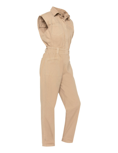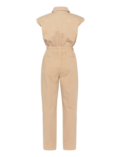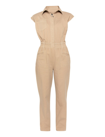 Conçue en coton 100%, cette combinaison allie confort et robustesse. Sa taille smockée élastiquée souligne la silhouette tout en offrant une liberté de mouvement optimale. Les multiples poches plaquées et passepoilées ajoutent une touche utilitaire chic, tandis que la fermeture pressionnée facilite l’enfilage. Le col chemise apporte une finition soignée, idéale pour un look à la fois casual et sophistiqué.