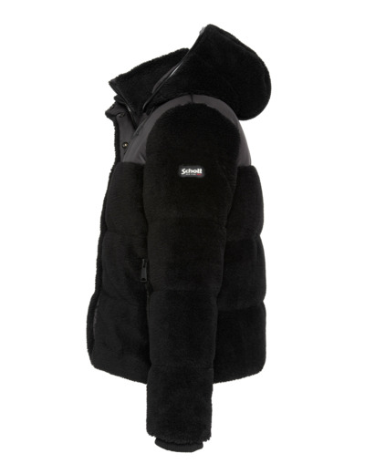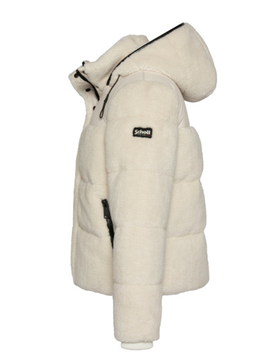 100 % polyester. Capuche fixe avec cordon de serrage. Col montant. Fermeture zippée protégée par un rabat pressionné. Empiècements aux épaules. Deux poches basses zippées. Badge logo Schott NYC sur la manche gauche. Poignets finition bord côte. Coupe standard.