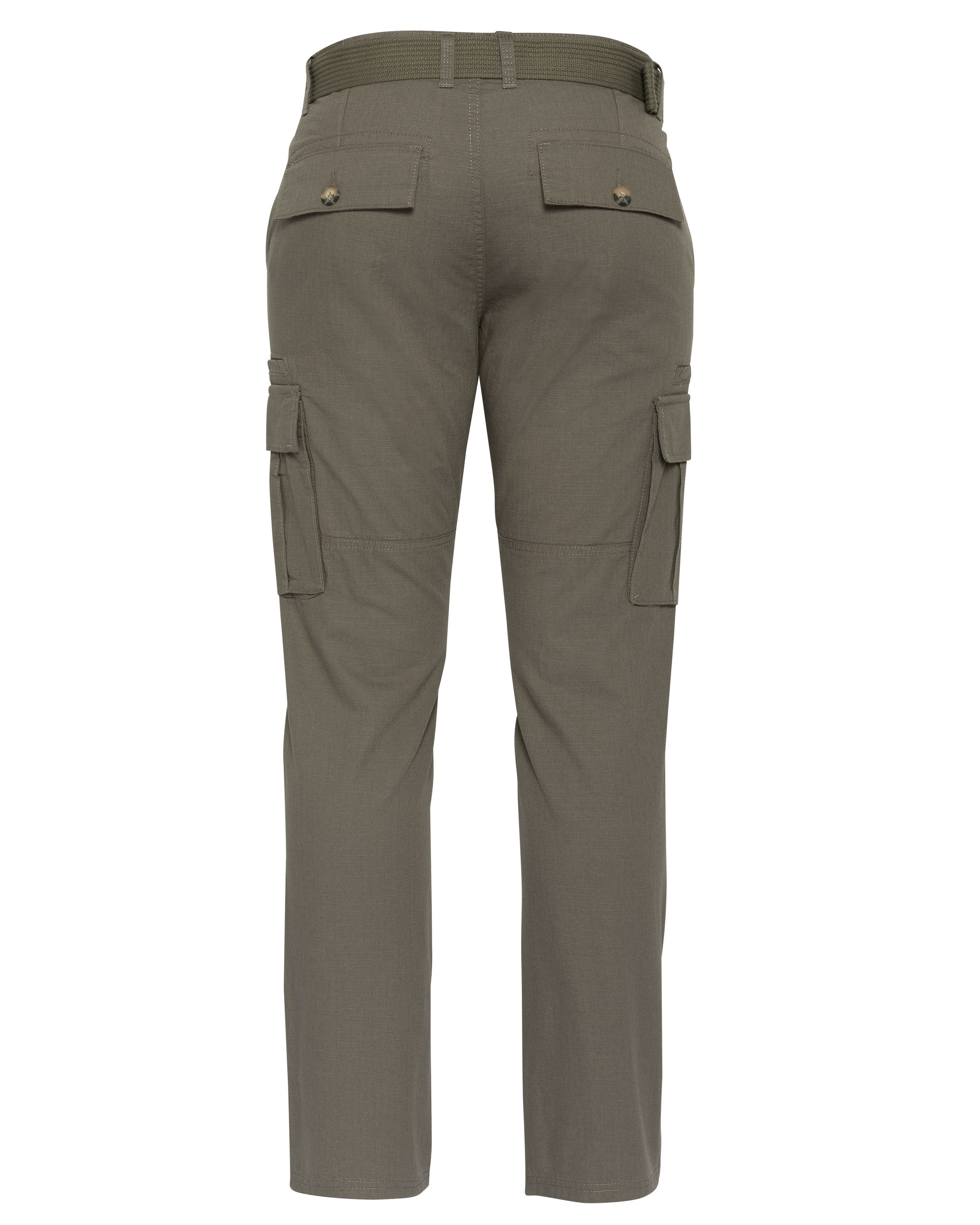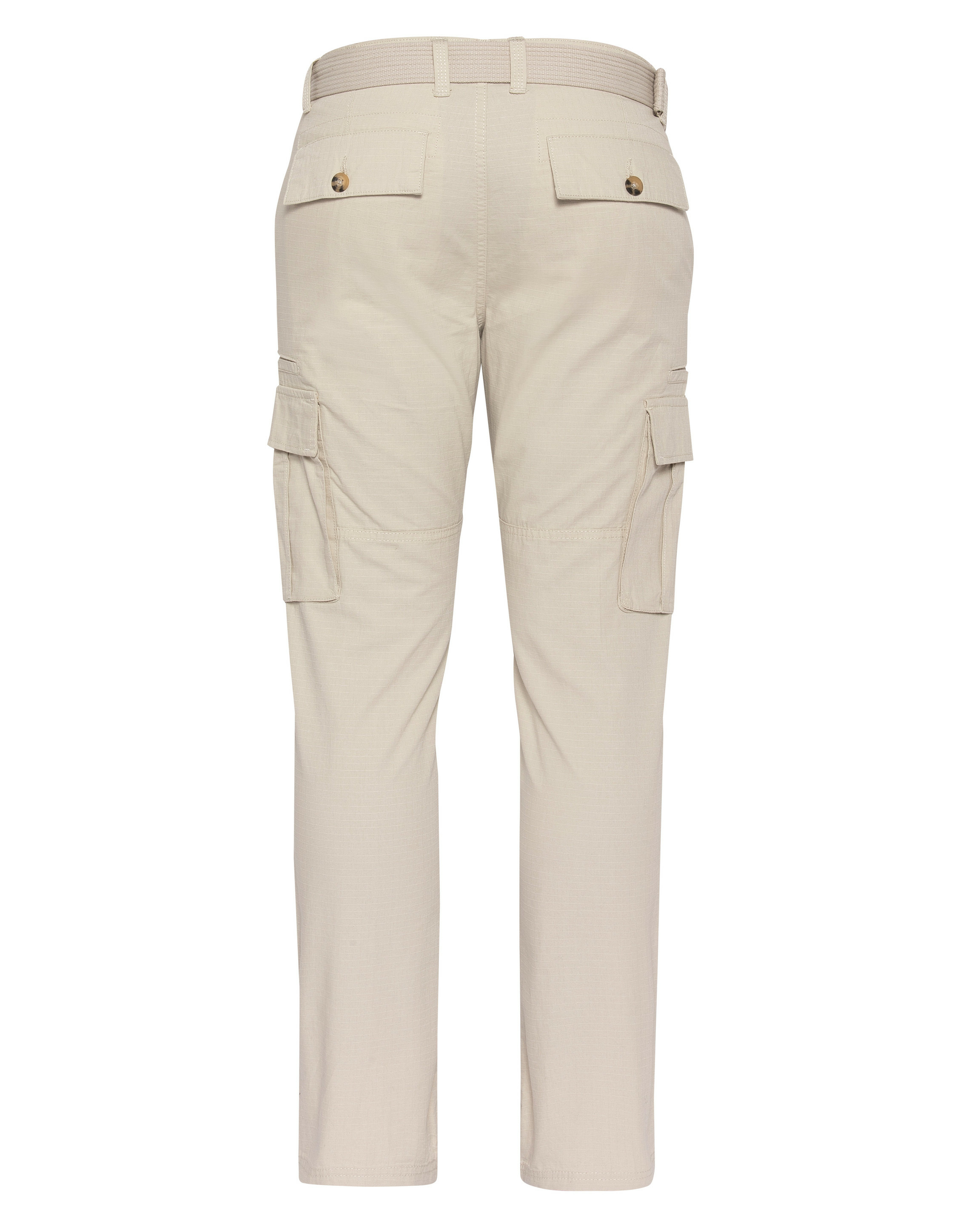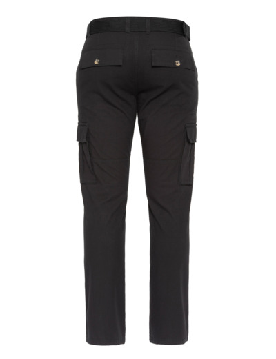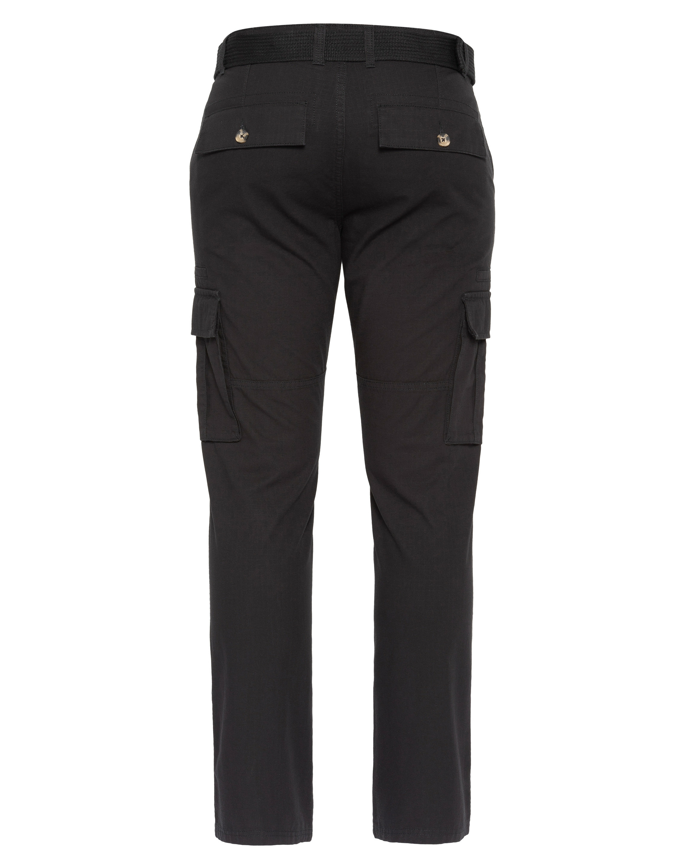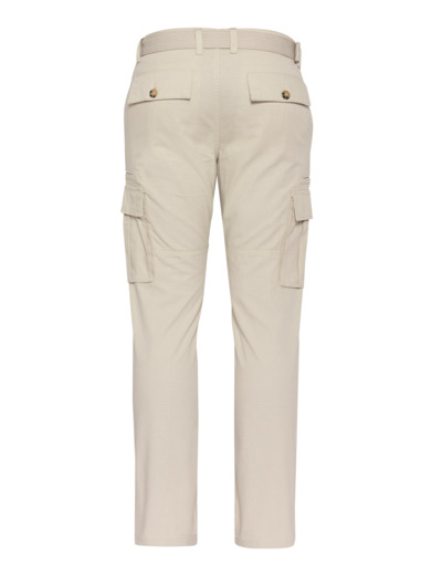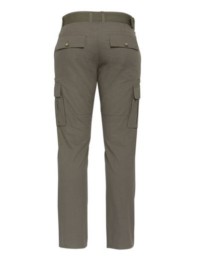 Fermeture boutonnée. Ceinture amovible. Deux poches avant, une poche gousset, deux poches basses à rabat boutonné, deux poches arrière à rabat boutonné. Coupe standard. Composition 100% coton. Entretien : lavage à 30° cycle délicat, pas de blanchiment, séchage en machine à température modérée, repassage à température moyenne, pas de nettoyage à sec.