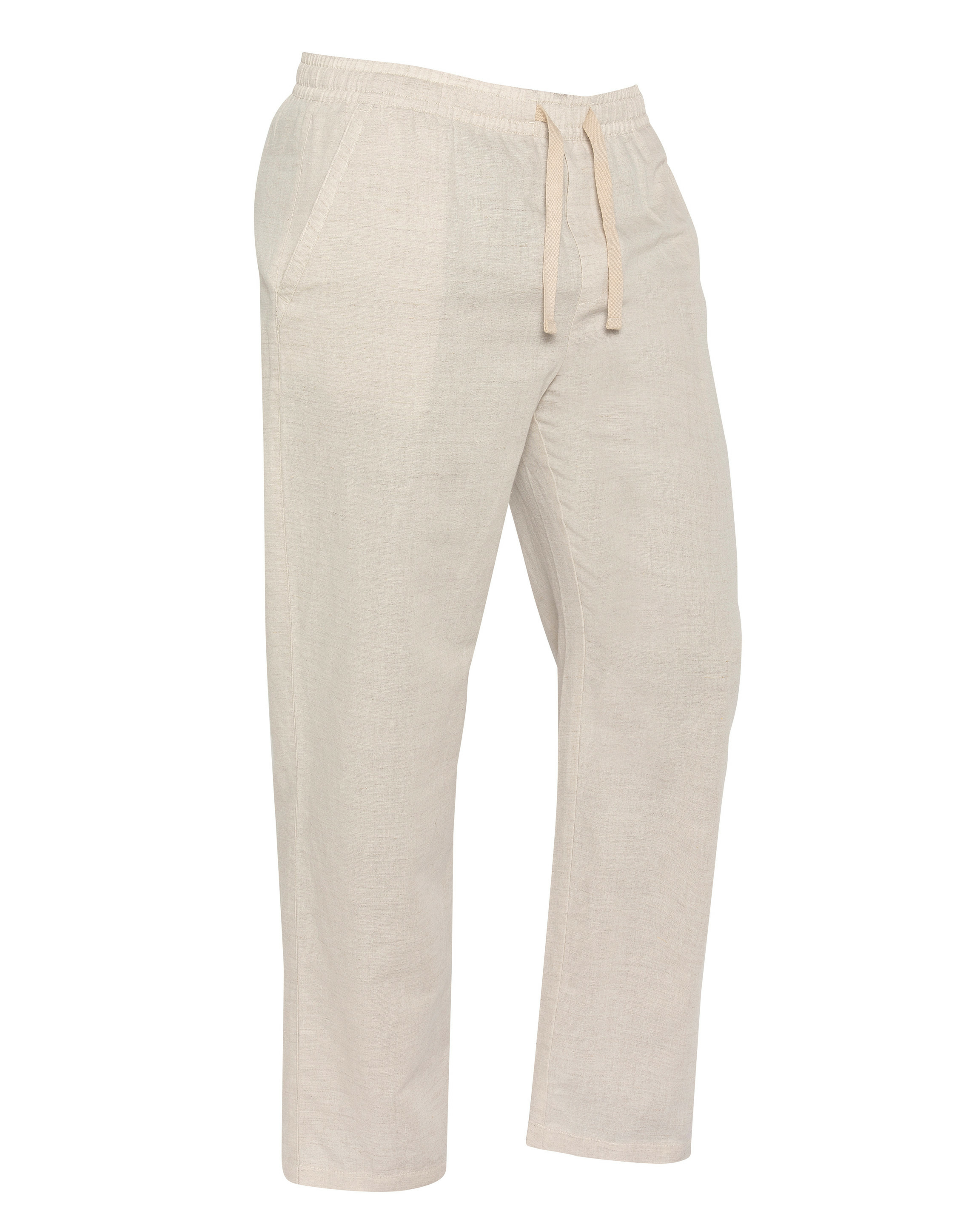 Conçu pour offrir une silhouette moderne et un toucher naturel, ce pantalon combine la fraîcheur du lin à la douceur du coton. Sa coupe standard et sa taille élastiquée avec cordon de serrage garantissent un ajustement parfait, tandis que ses poches avant et arrière apportent praticité et finition soignée. Idéal pour les looks casual ou habillés, il s’adapte à toutes vos envies.