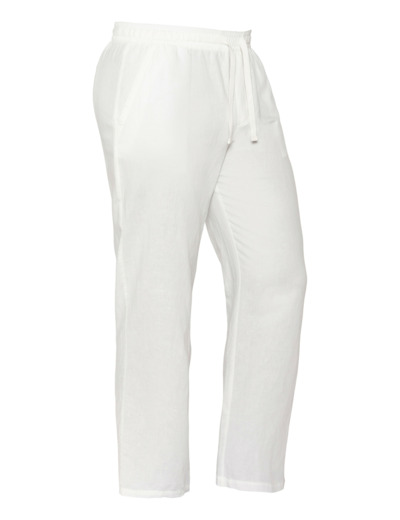 Composé à 55% de lin et 45% de coton, ce pantalon se lave à 30° en cycle délicat ou laine. Évitez le blanchiment, le sèche-linge et le nettoyage à sec. Repassage doux recommandé. Lavez-le avant la première utilisation et séparez-le des autres textiles.