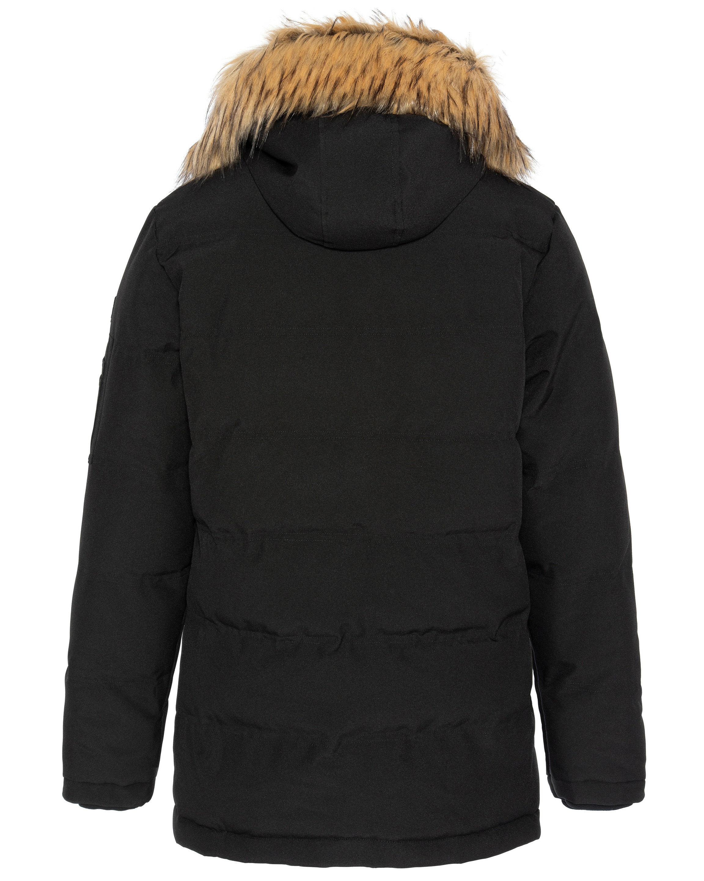 2 poches poitrine pressionnées doublées polaires, 1 poche zippée manche gauche, 2 poches basses à rabat pressionnée et 2 poches latérales doublées polaires