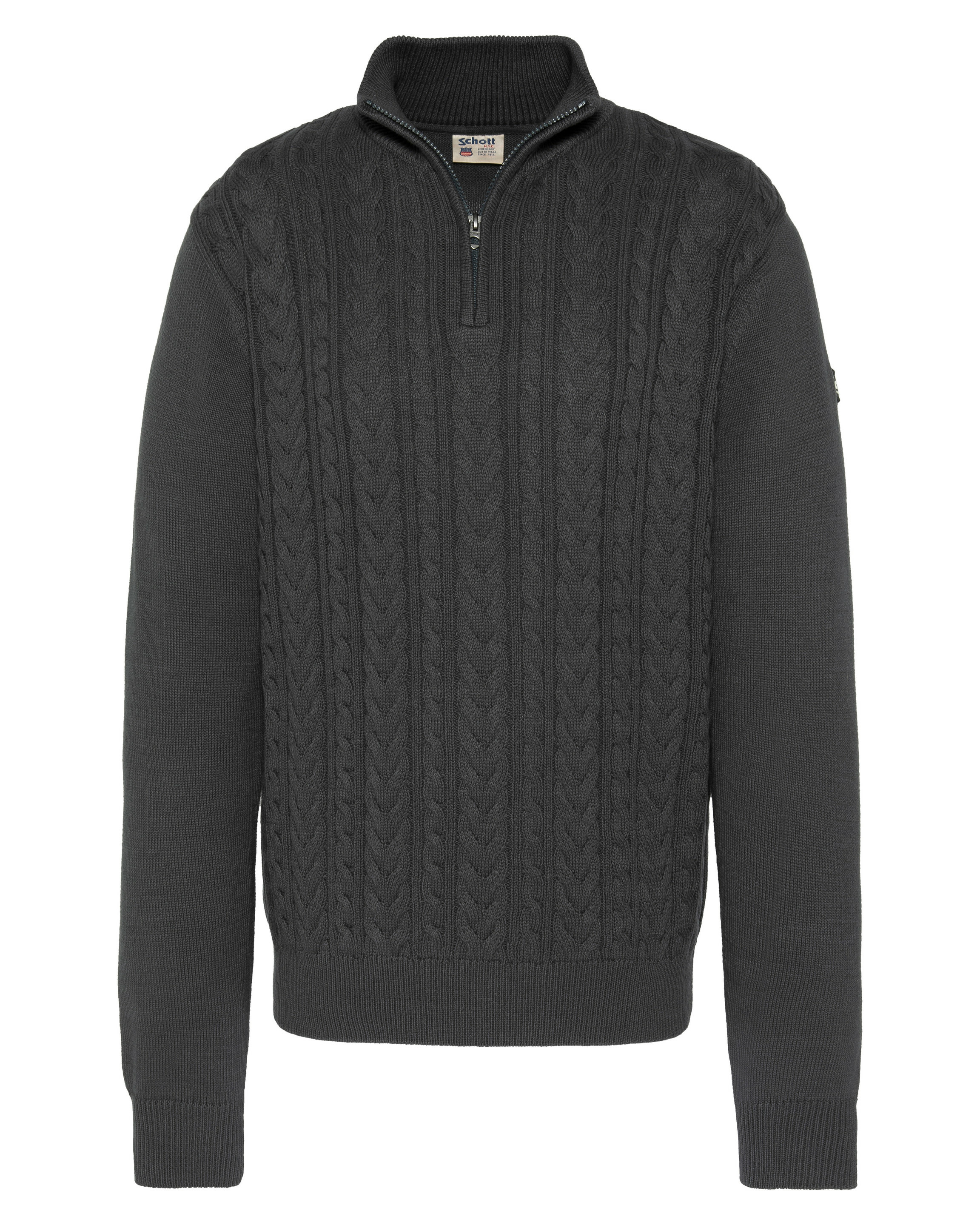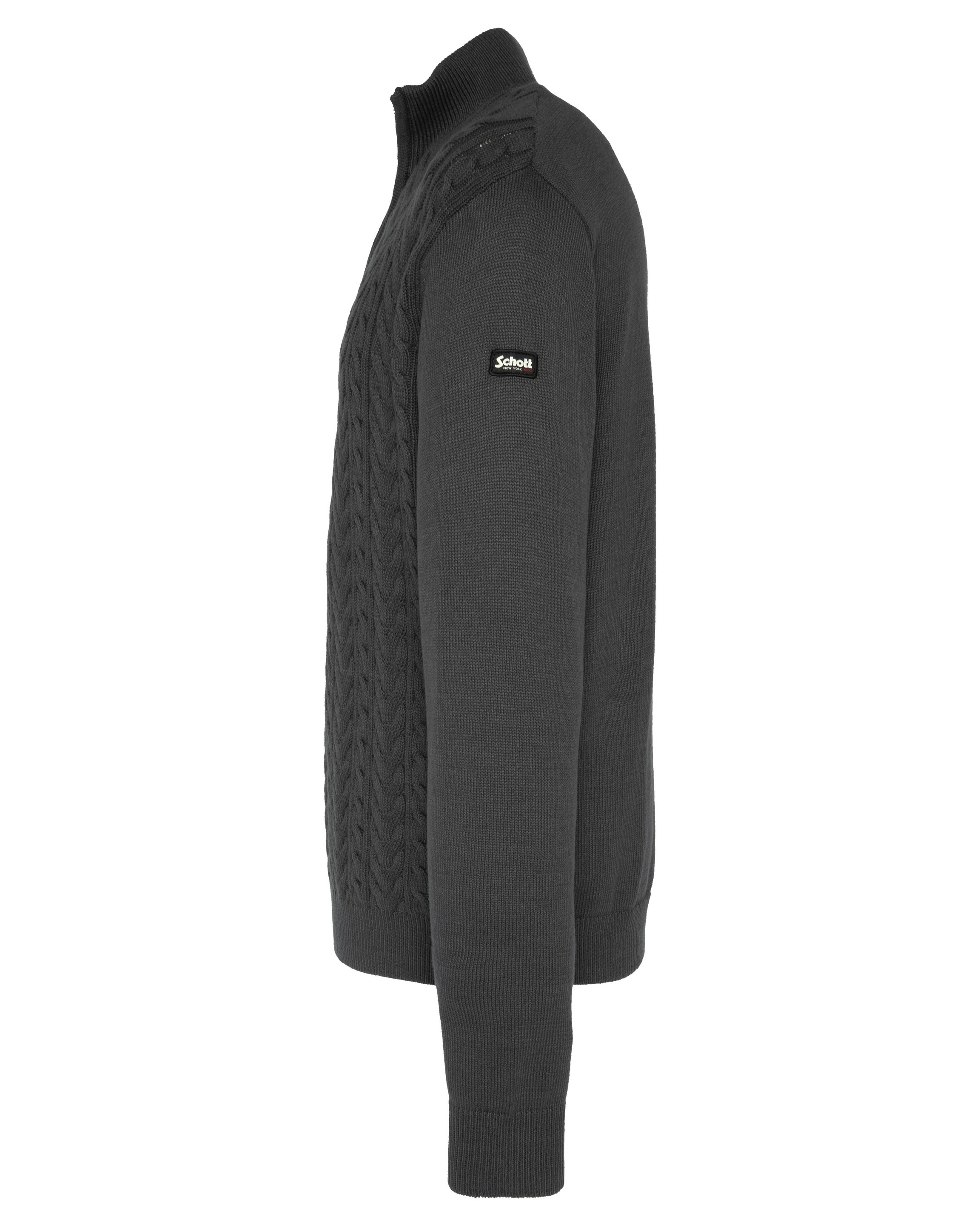Conçu dans une maille torsadée 100 % coton, ce pull offre une texture riche et un toucher doux qui enveloppent sans alourdir. Son col zippé ajoute une touche moderne et pratique, tandis que la finition bord côte aux poignets, au col et à la taille garantit un maintien parfait et une silhouette structurée. Le badge logo Schott NYC® sur la manche gauche signe une identité forte et un gage de qualité.