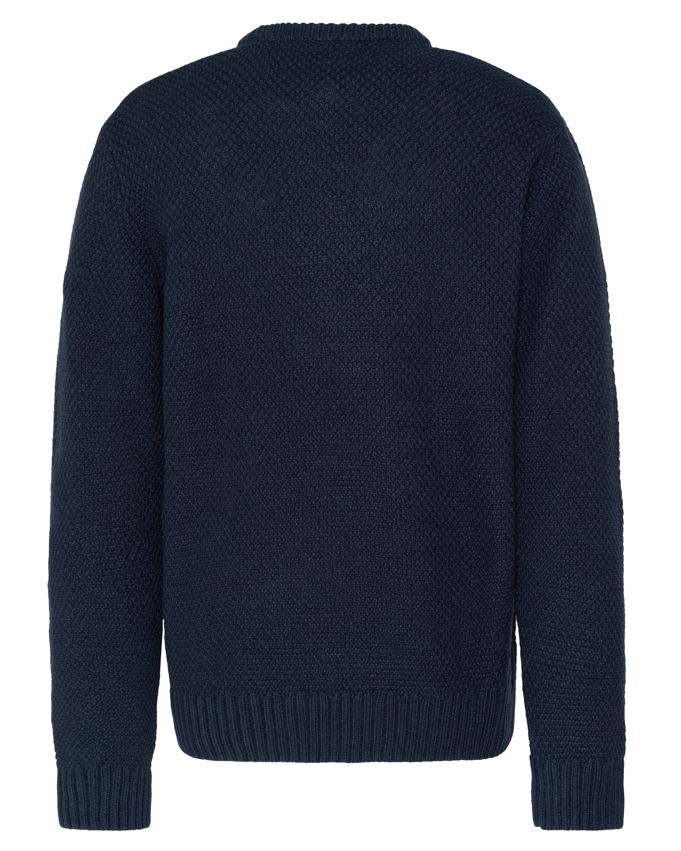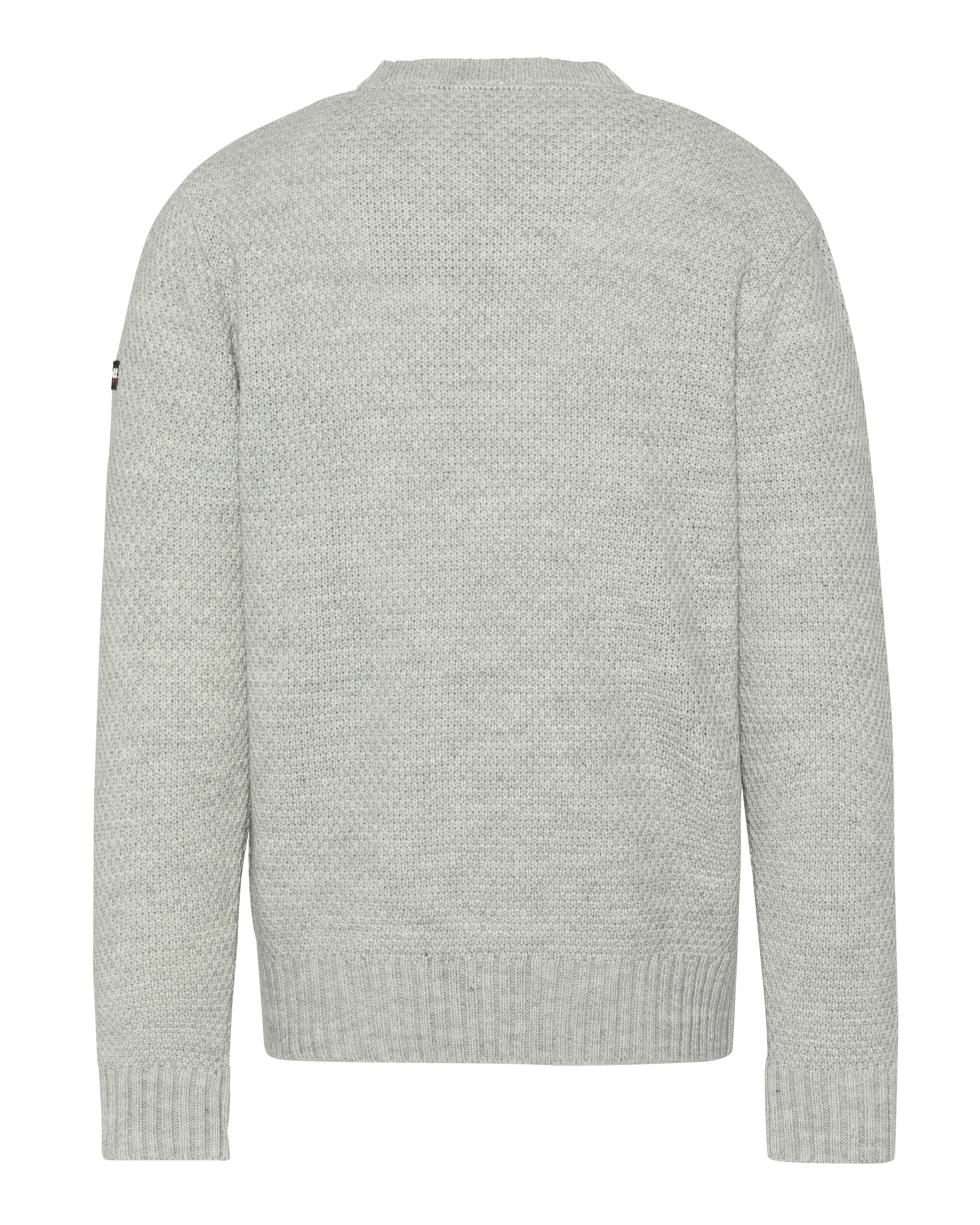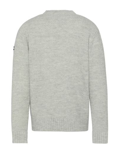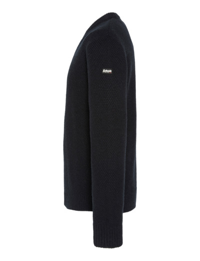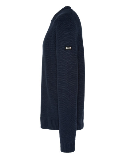 Maille fantaisie, col rond, finitions bord côte au col, poignets et taille, badge logo Schott NYC® sur la manche gauche. Composition : 85% acrylique, 15% laine. Entretien : lavage à 30° en cycle délicat ou laine, lavage séparé, pas de blanchiment, pas de sèche-linge, séchage à plat, repassage doux, pas de nettoyage à sec.