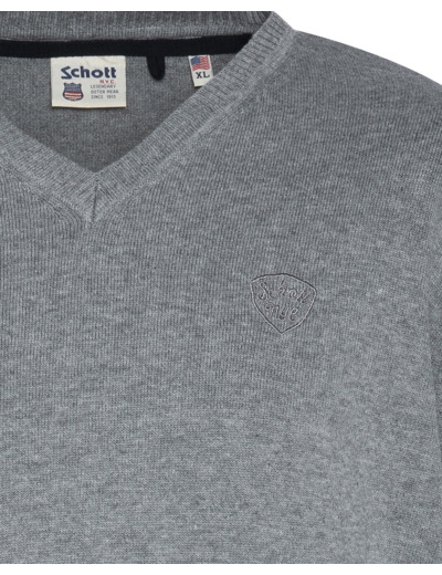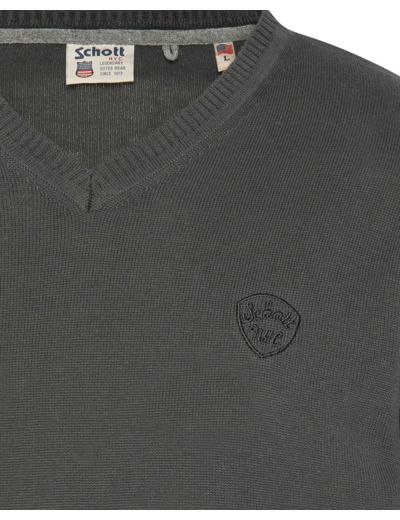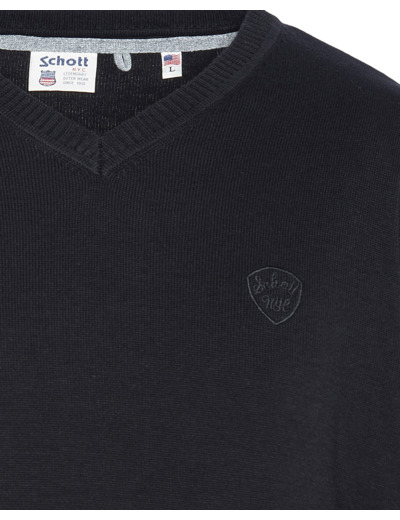 Confectionné en coton 100%, ce pull léger épouse parfaitement la silhouette grâce à sa coupe standard. Son col en V souligne subtilement le cou, tandis que le logo Schott NYC brodé sur la poitrine apporte une touche d’authenticité et de caractère. Les finitions en bord côte aux poignets, au col et à la taille garantissent une tenue impeccable et durable.