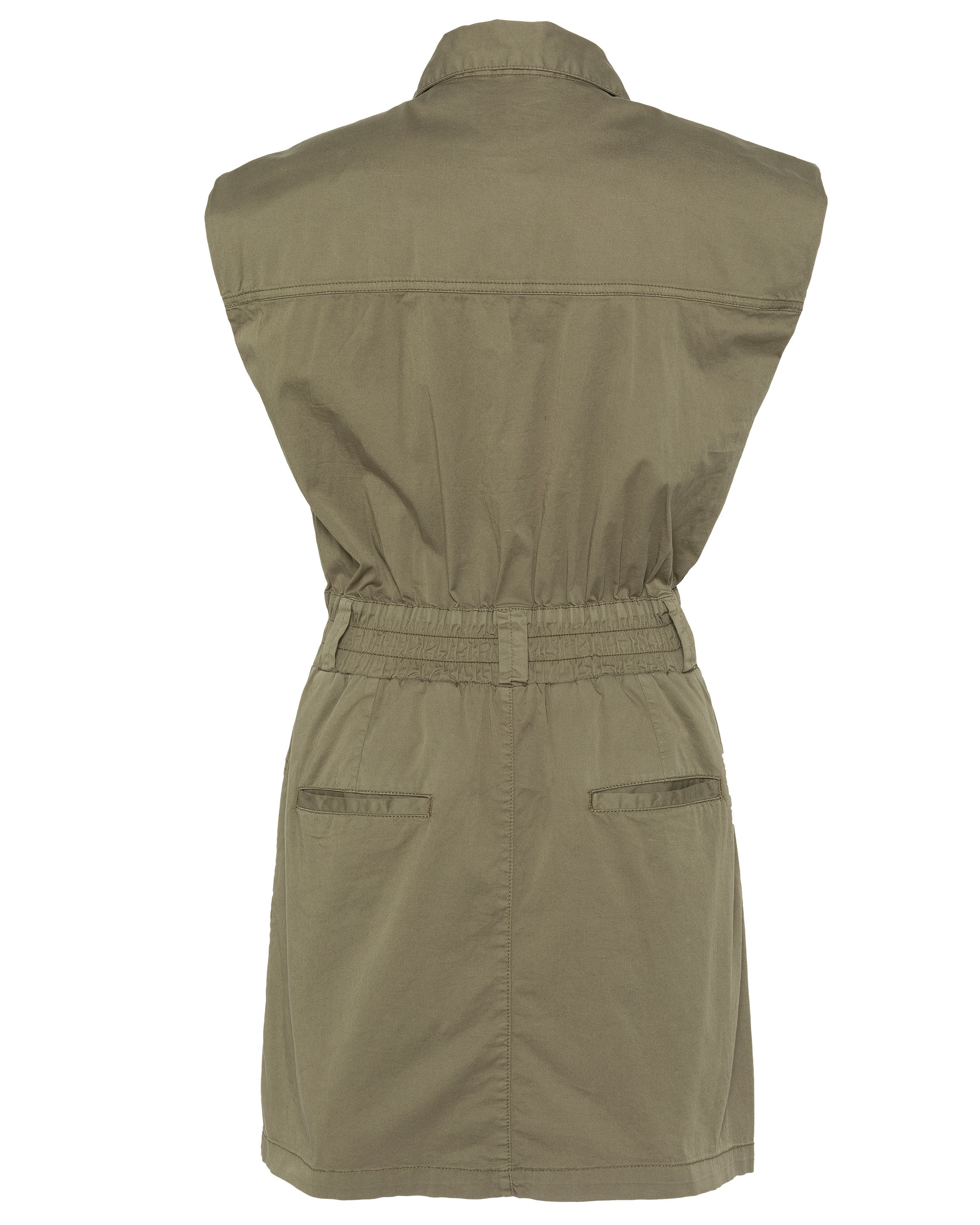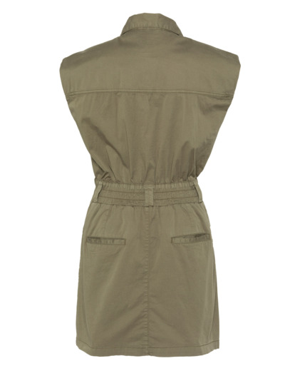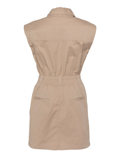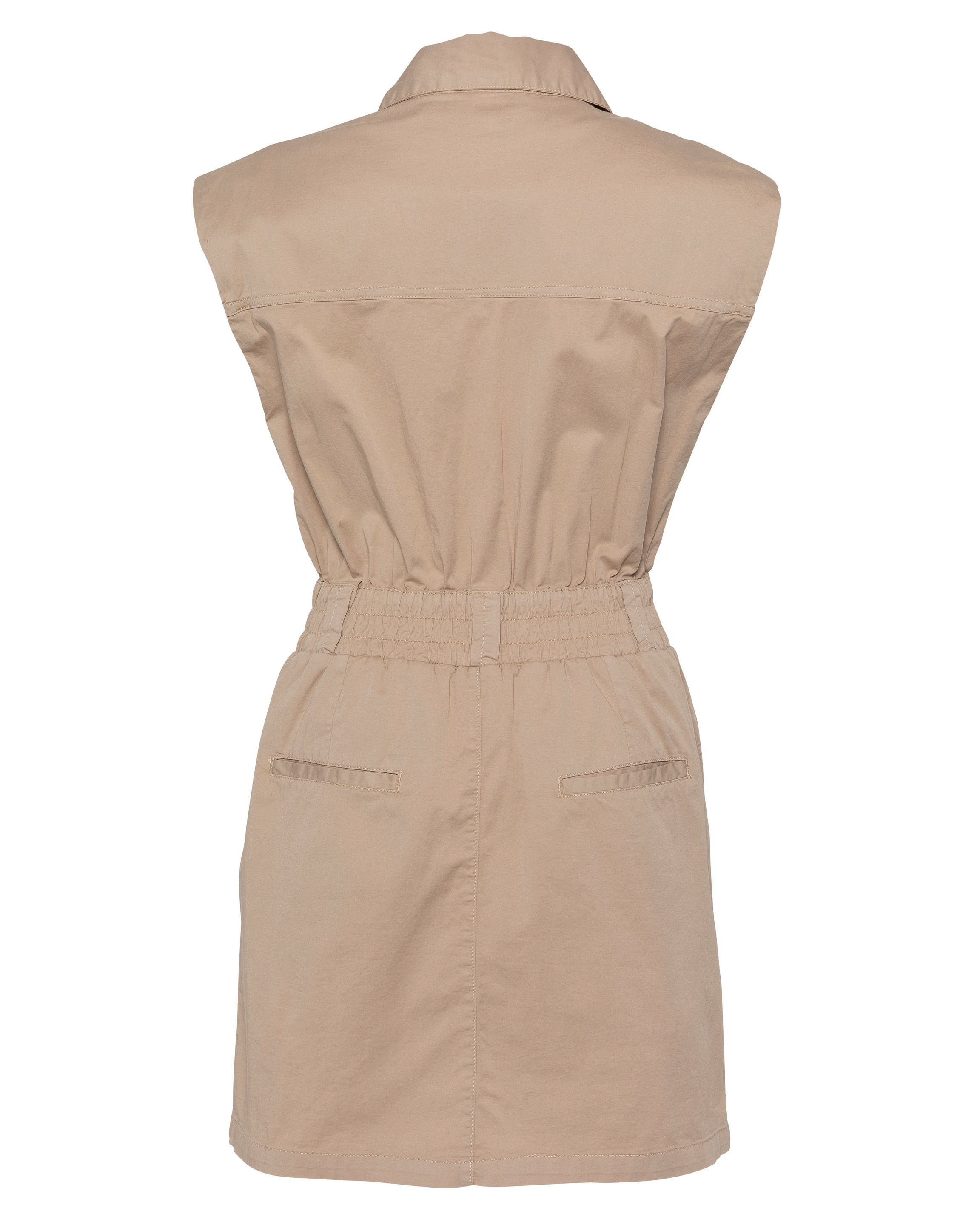 Conçue en coton 100%, cette robe allie confort et robustesse. Sa taille smockée souligne la silhouette tout en offrant une liberté de mouvement, tandis que son col chemise et ses multiples poches apportent une touche utilitaire chic. Le logo brodé ton sur ton sur la poche poitrine affirme discrètement l’authenticité de la marque.