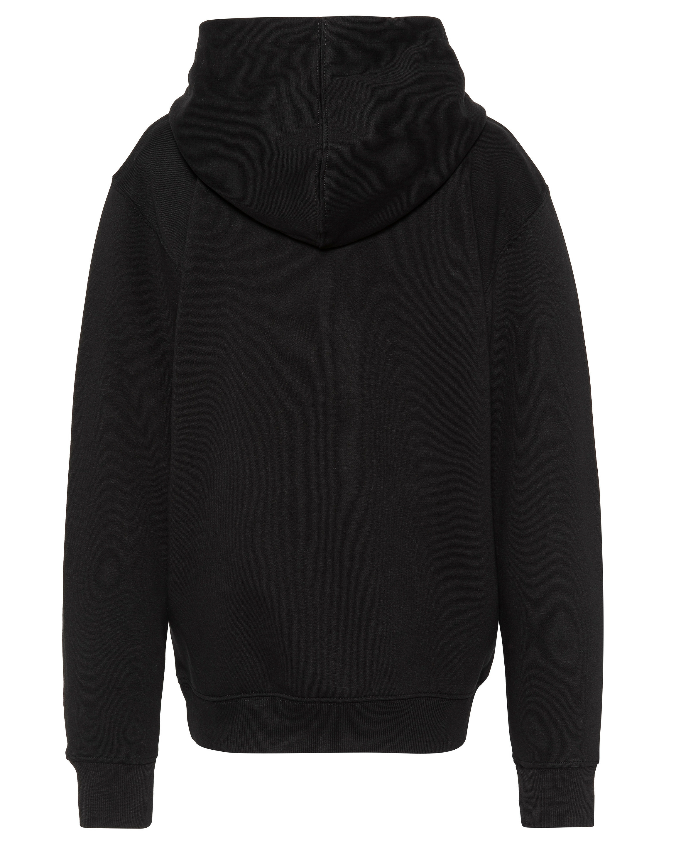 Composition : 80% coton, 20% polyester. Coupe standard. Capuche fixe. Poche kangourou. Finition bord côte aux poignets et à la taille. Entretien : lavage à 30°, pas de blanchiment, pas de sèche-linge, repassage doux sur l’envers, lavage séparé.