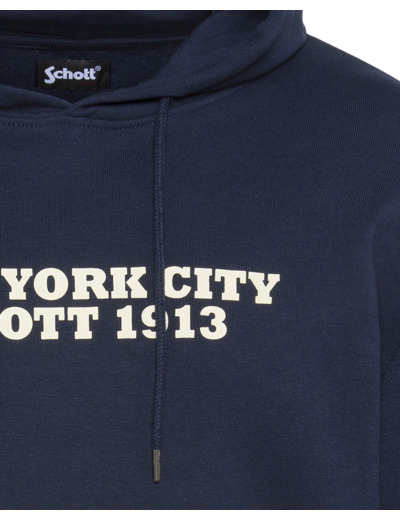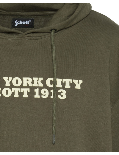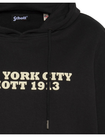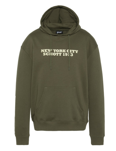 Confectionné dans un mélange doux de coton et polyester, ce sweatshirt offre une coupe standard qui s’adapte parfaitement à toutes les silhouettes. La capuche fixe avec cordon de serrage apporte une touche sportive tout en protégeant des intempéries légères. Le logo Schott Bros Inc imprimé sur la poitrine souligne l’authenticité et la qualité de la marque, tandis que la poche kangourou pratique garde vos mains au chaud ou vos essentiels à portée.
