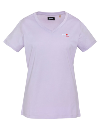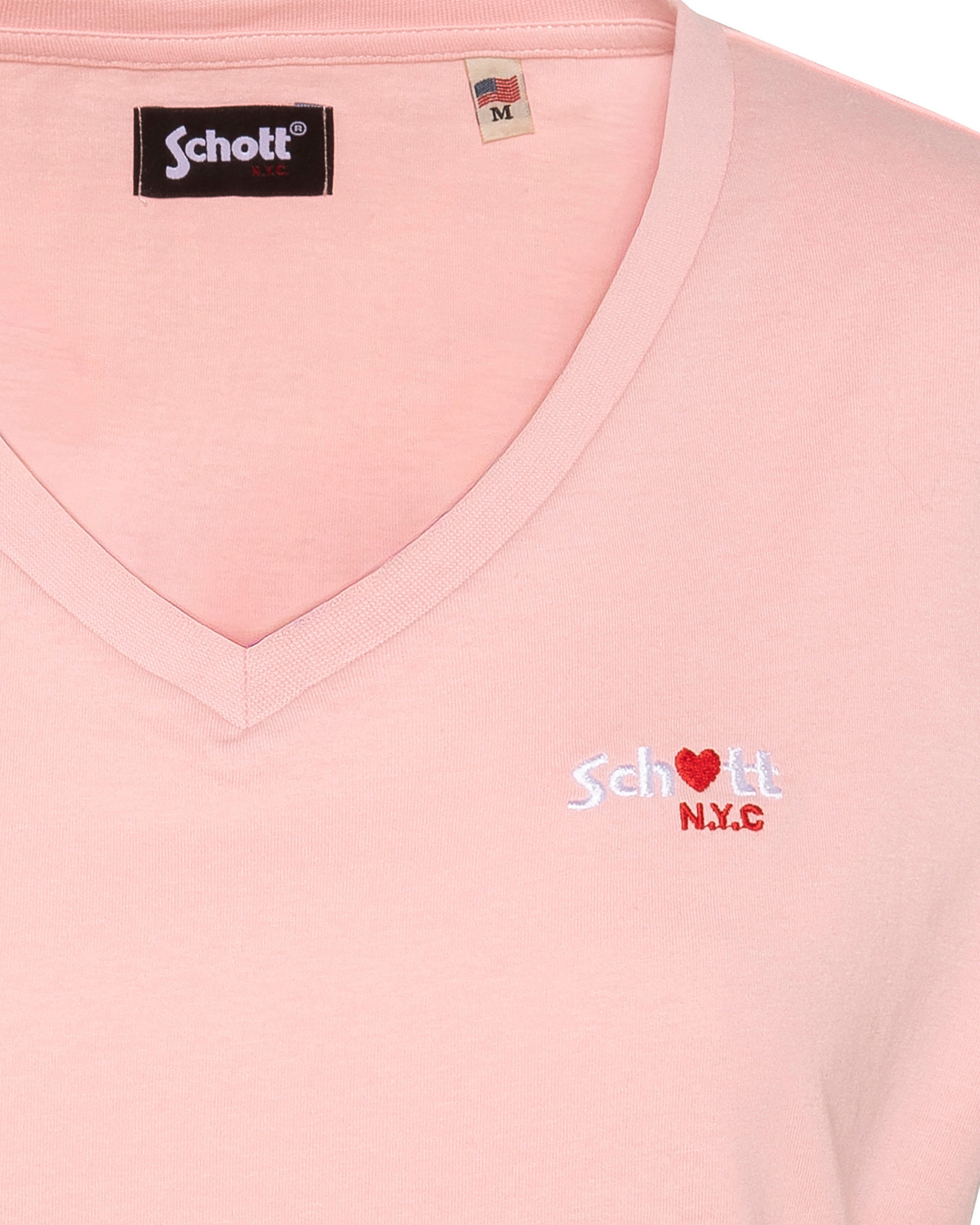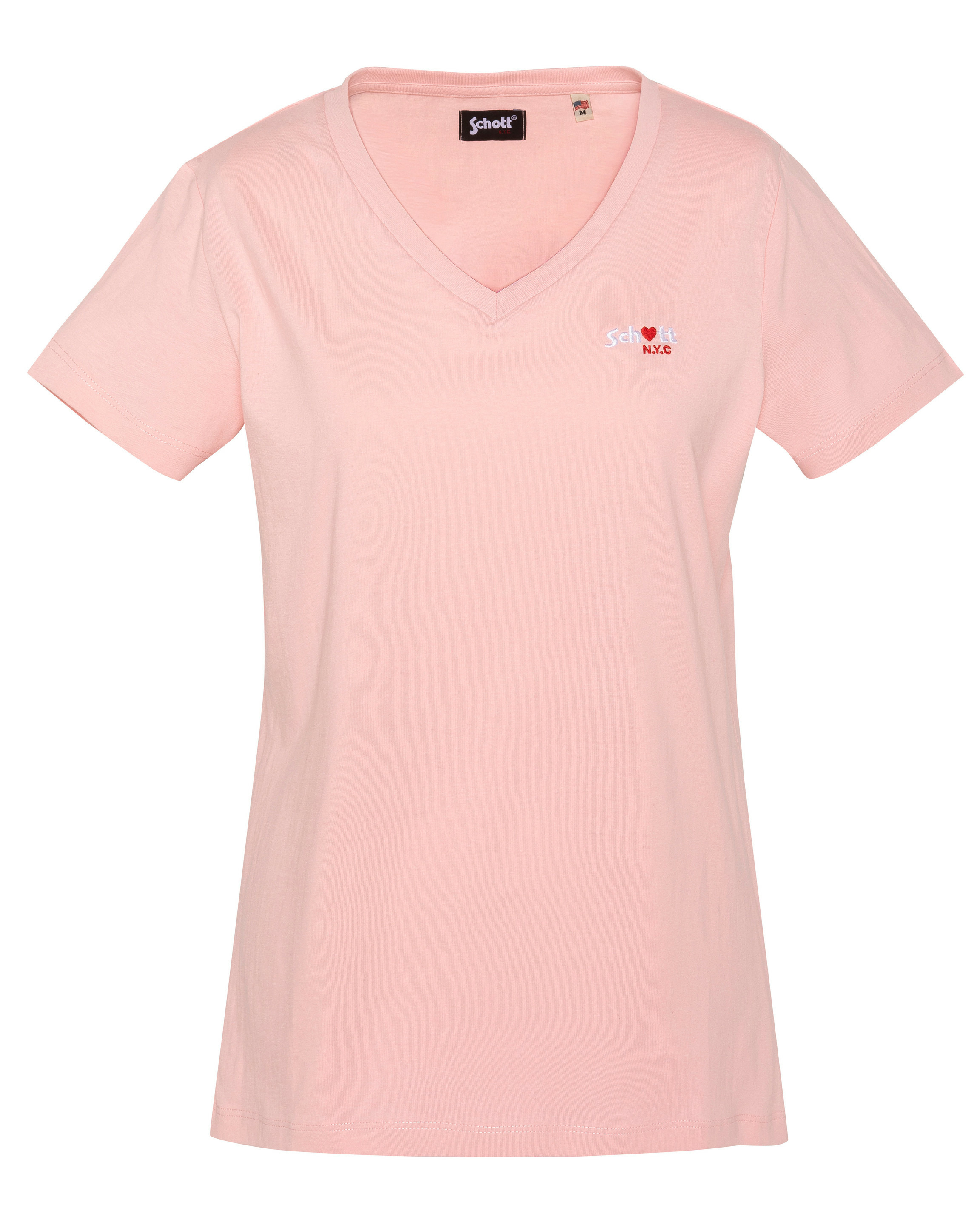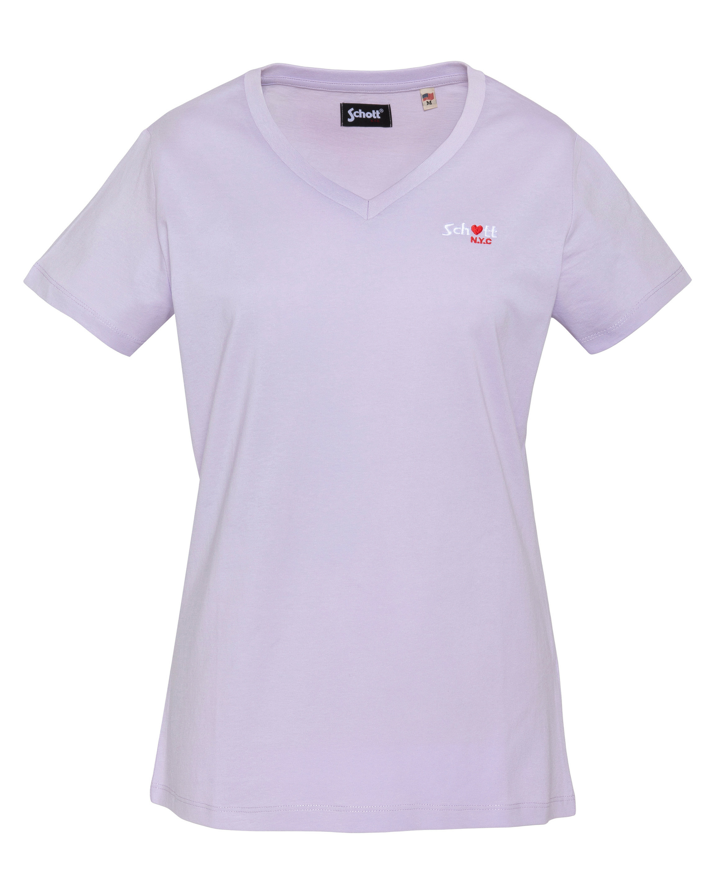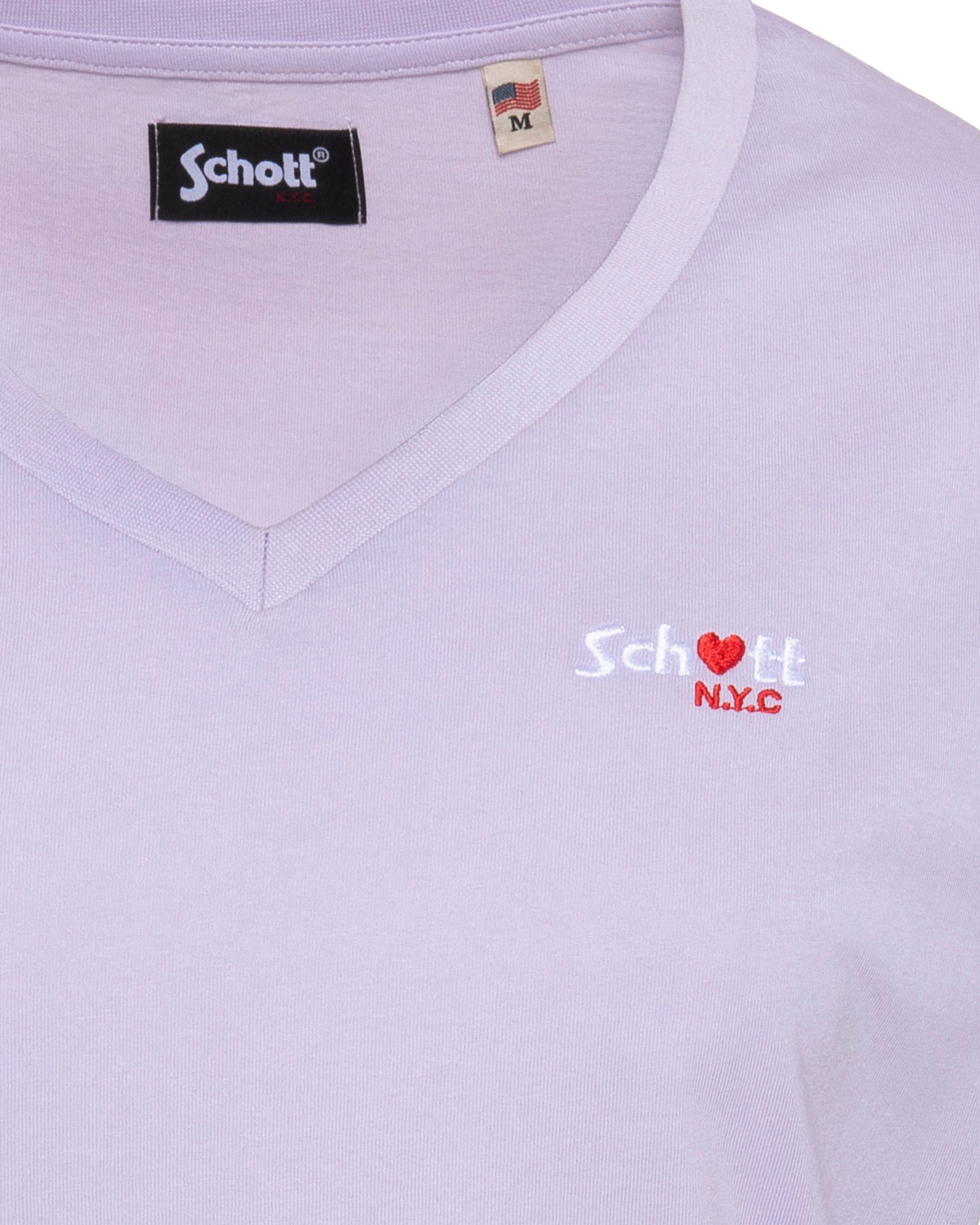 100% coton, col en V, manches courtes, coupe standard. Broderie poitrine « Schott N.Y.C. » avec petit cœur rouge. Entretien : lavage à 30°, pas de blanchiment, pas de sèche-linge, repassage doux, pas de nettoyage à sec, lavage séparé à l’envers.