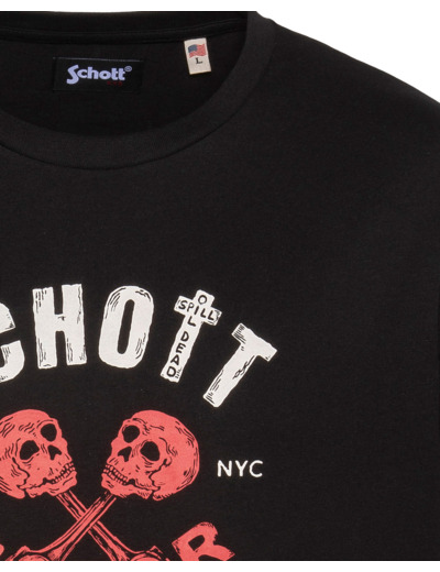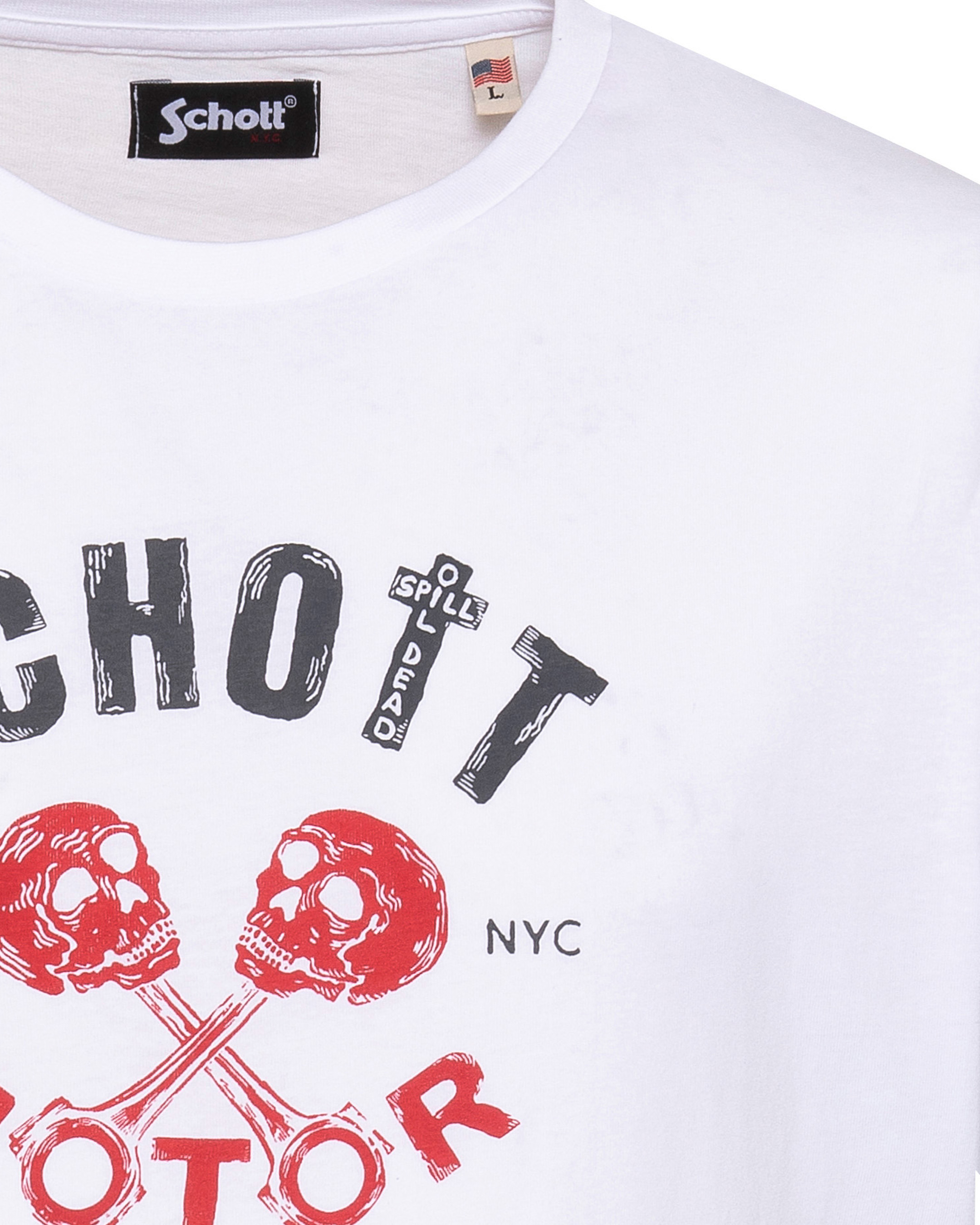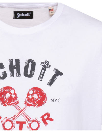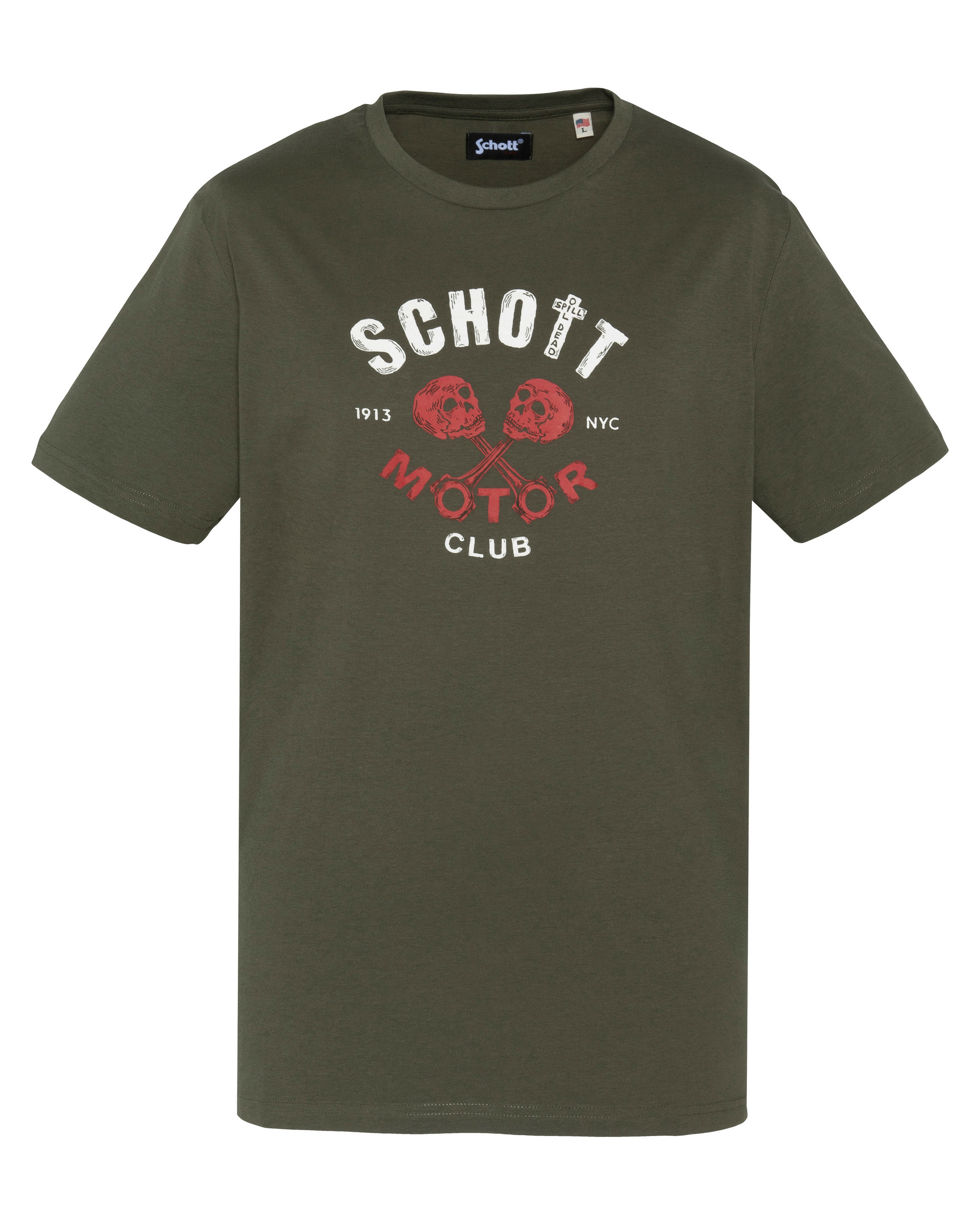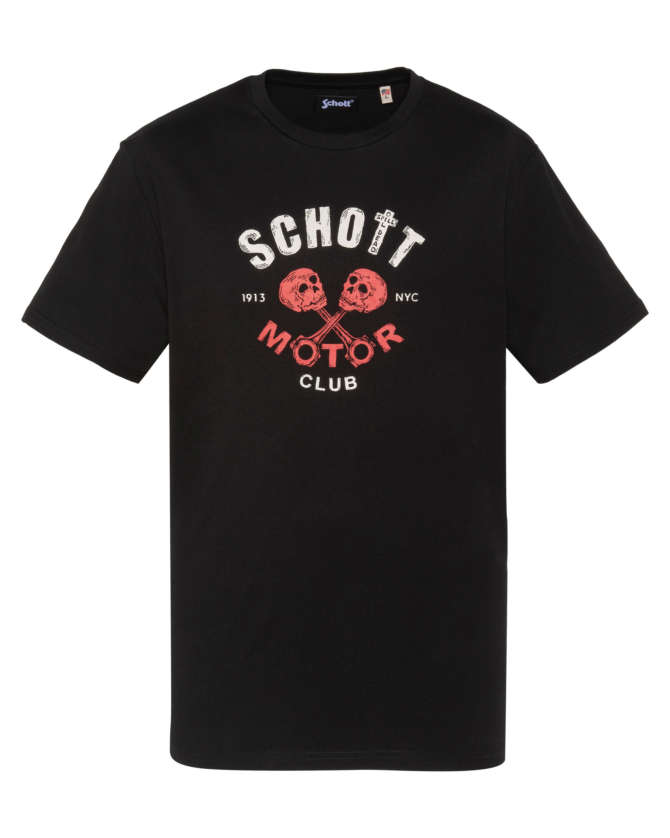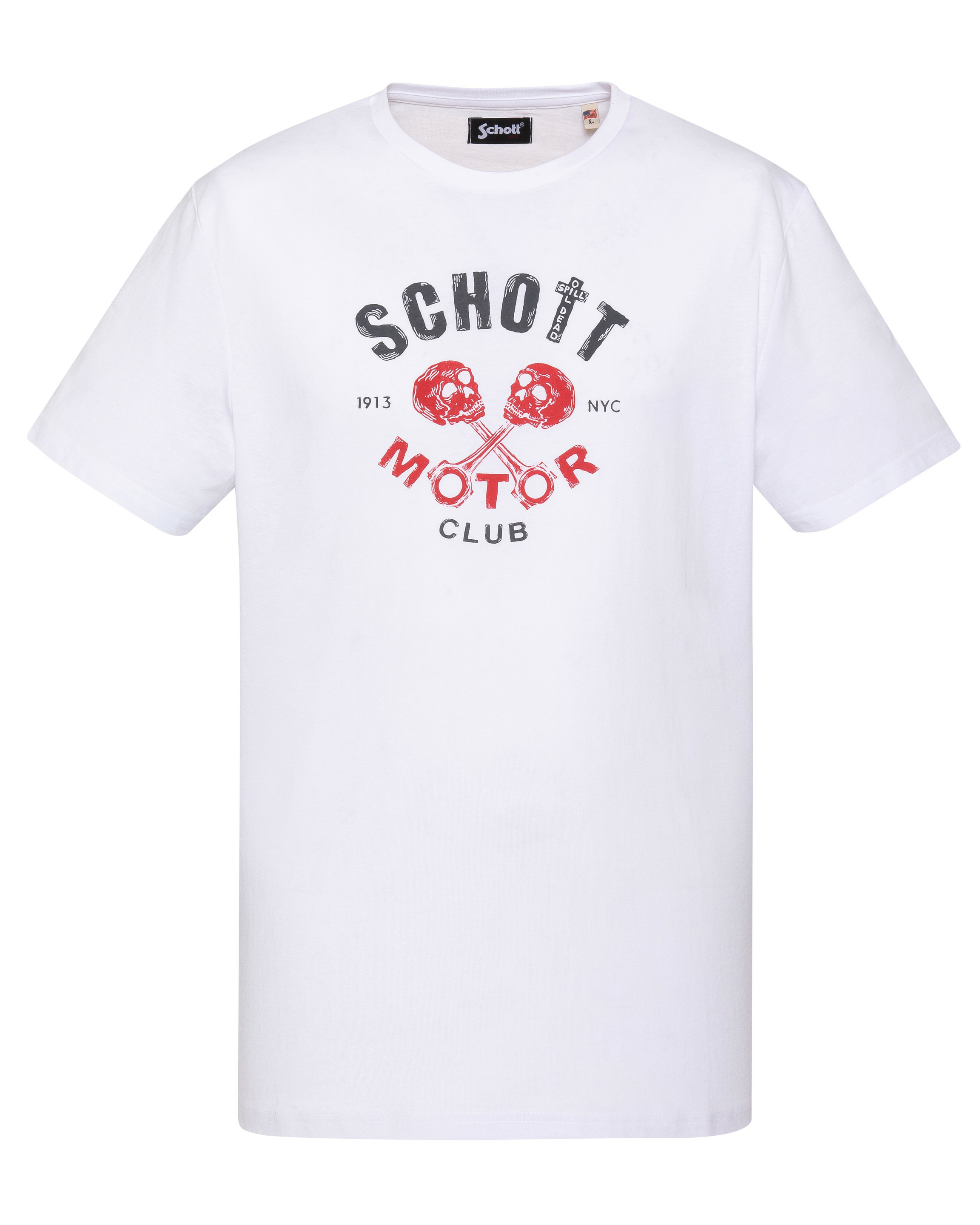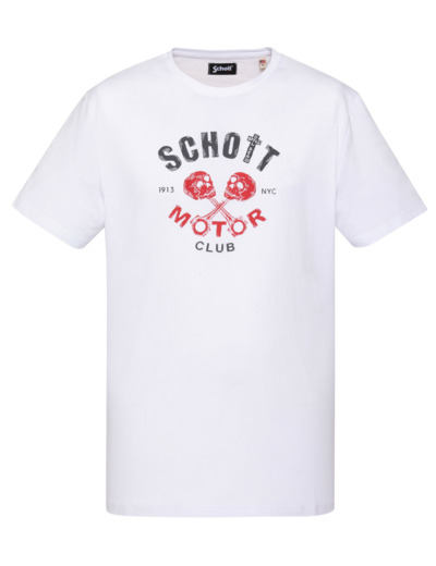 Composition : 100 % coton. Coupe standard. Col rond, manches courtes. Imprimé poitrine « SCHOTT MOTOR CLUB ». Entretien : lavage à 30°, blanchiment interdit, pas de sèche-linge, repassage doux à l’envers, pas de nettoyage à sec, laver séparément à l’envers.