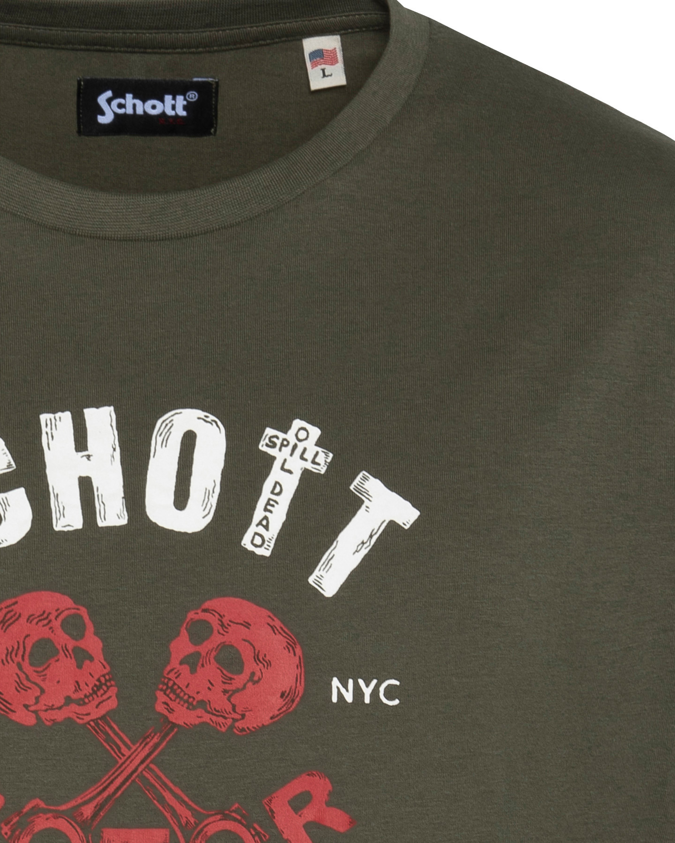 Conçu en 100 % coton, ce T-shirt offre un confort optimal tout au long de la journée. Le col rond et les manches courtes renforcent son allure décontractée, tandis que l’imprimé « SCHOTT MOTOR CLUB » sur la poitrine apporte une touche vintage et authentique, reflet de l’héritage Schott NYC.