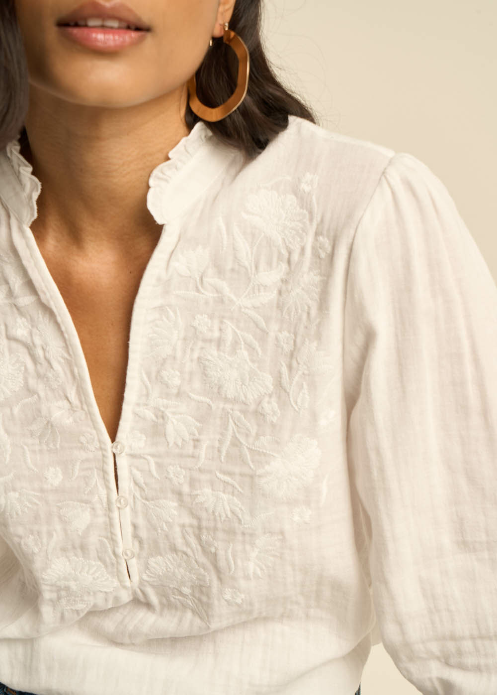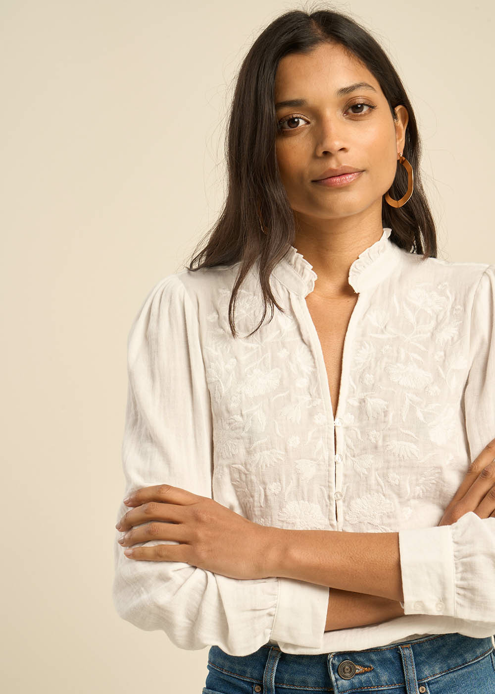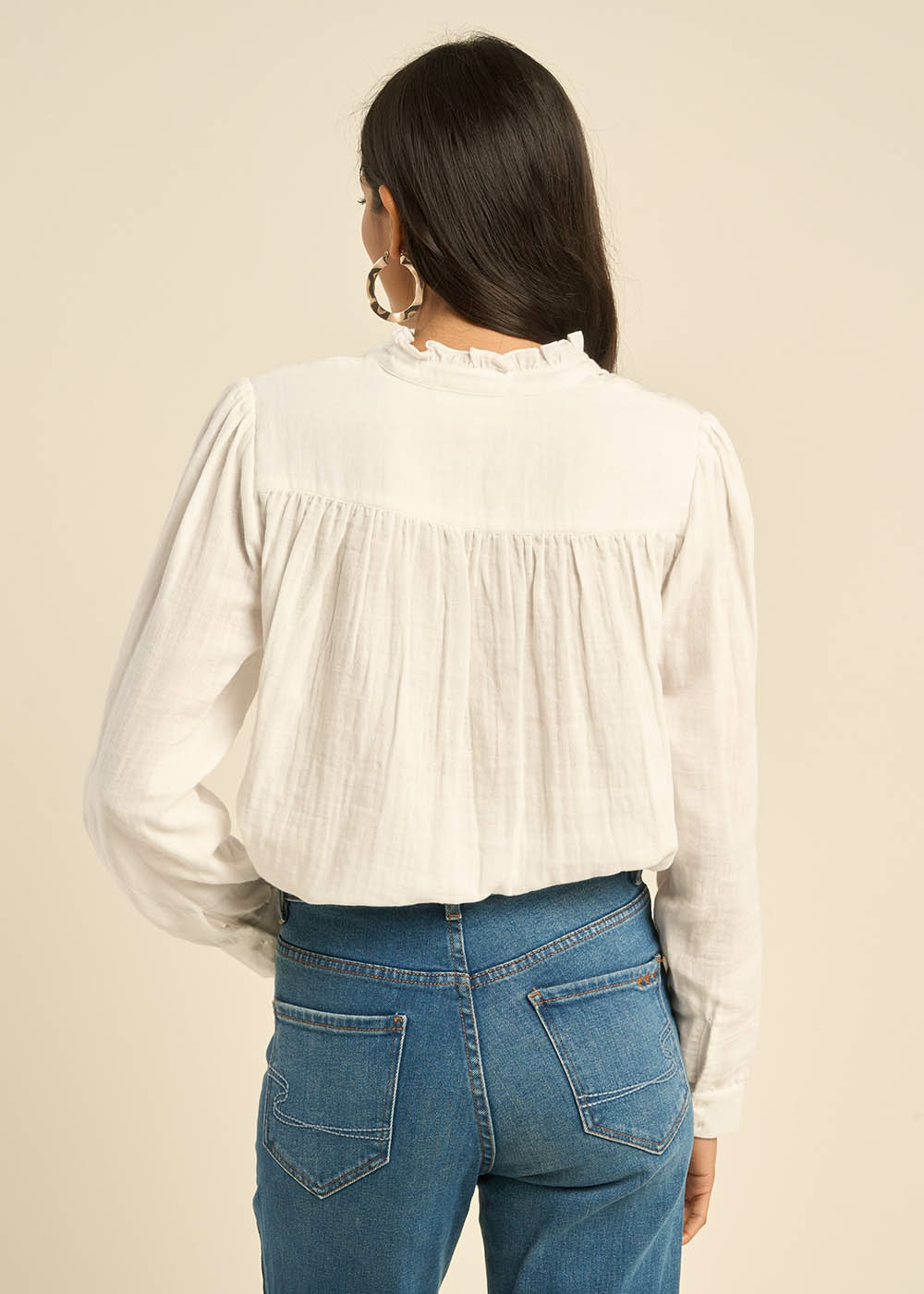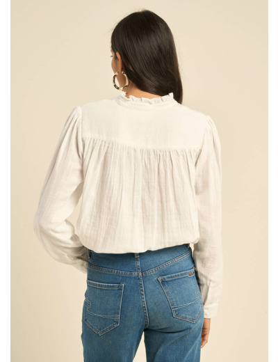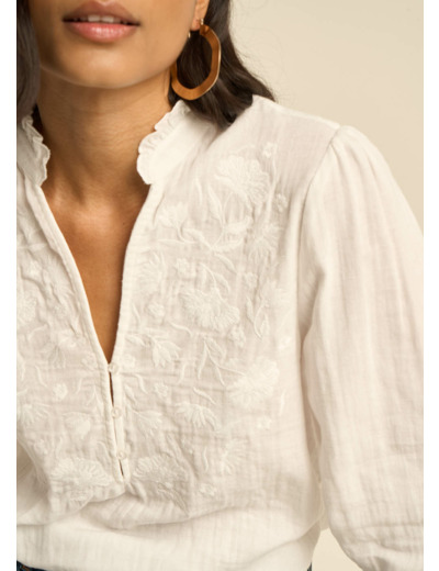 Le chemisier CADOULI se distingue par son col montant et son col V élégant. Les broderies délicates sur le devant ajoutent une touche de sophistication à ce basique intemporel. Parfait pour un look chic et raffiné, ce chemisier est idéal pour toutes les occasions.