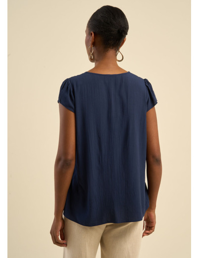 La blouse TALIZIE est une pièce élégante et fluide, parfaite pour sublimer un look estival. Son tissu en crépon de viscose brodé apporte une touche bohème et raffinée, idéale avec un jean.