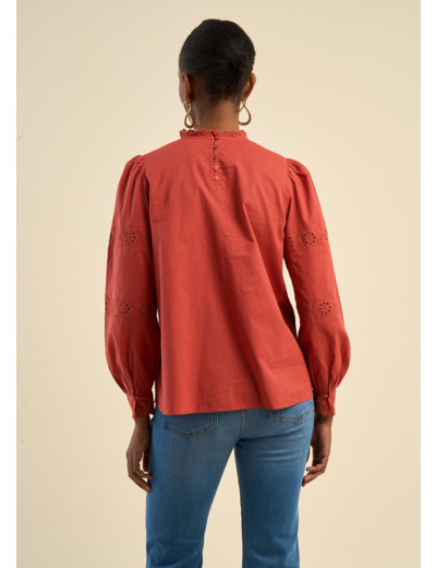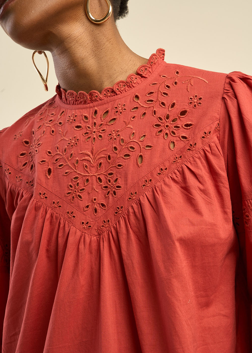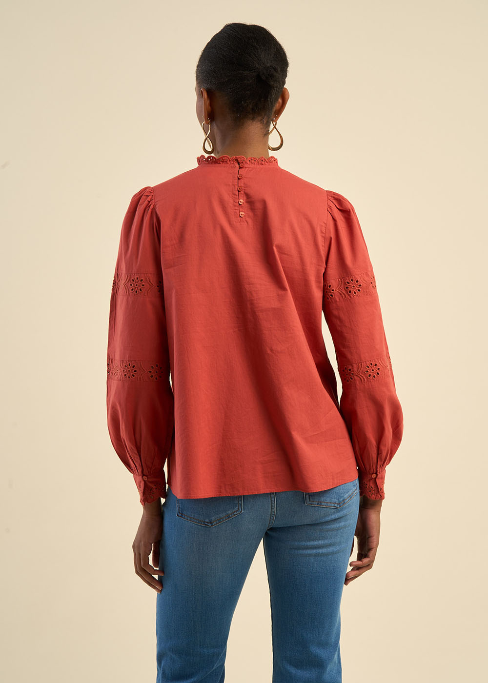 Laissez-vous envoûter par notre blouse TAMIKA, confectionnée dans un voile de coton léger et aérien. Ses manches larges, sublimées par des incrustations de broderies anglaises délicates, apportent une touche d'élégance et de raffinement. Le col, orné de broderies anglaises assorties, ajoute une dimension supplémentaire à ce top au style intemporel. Pour une touche finale parfaite, une fente boutonnée au dos complète le design, offrant à la fois confort et modernité.