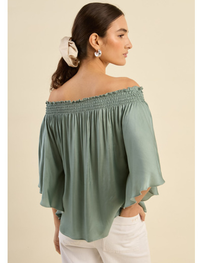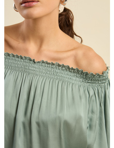 Laissez-vous séduire par l'élégance et la légèreté du top TAROSA, une pièce à la fois féminine et tendance. Son design épaule dénudée et son tissu fluide en viscose en font un incontournable pour un look chic et estival.