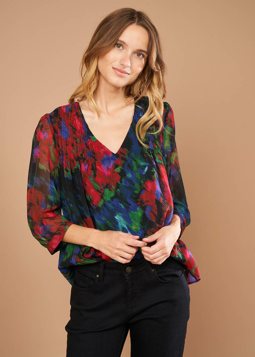 Craquez pour notre top imprimé à l'encolure en V. Le TAZZURA vous apportera une touche élégante et décontractée. Les plis plats sur le devant ajoutent une dimension supplémentaire à ce vêtement chic. Ses manches 3/4 avec un petit poignet boutonné ajoutent une finition raffinée à ce haut polyvalent. Associez-le avec votre jeans préféré pour un succès garanti!