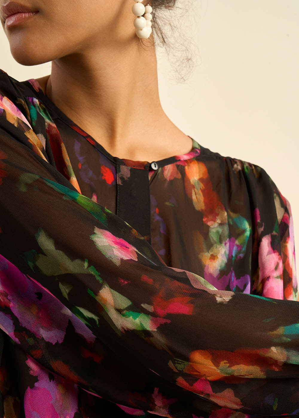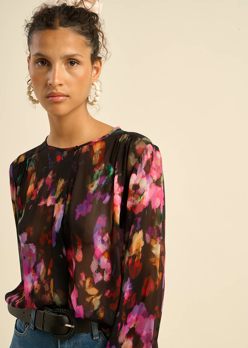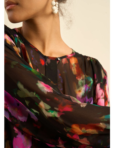 CLAUDIE, la chemise idéale pour un look rock chic. Ses imprimés floraux violets, sa coupe droite et ample et son encolure ronde lui donnent un aspect à la fois féminin et rebelle. Parfaite pour les soirées, elle s'associera à merveille avec un pantalon en cuir ou un jean noir.