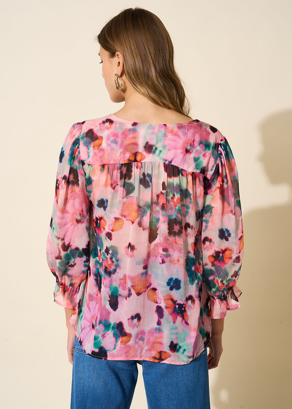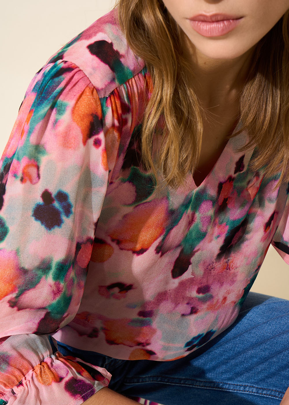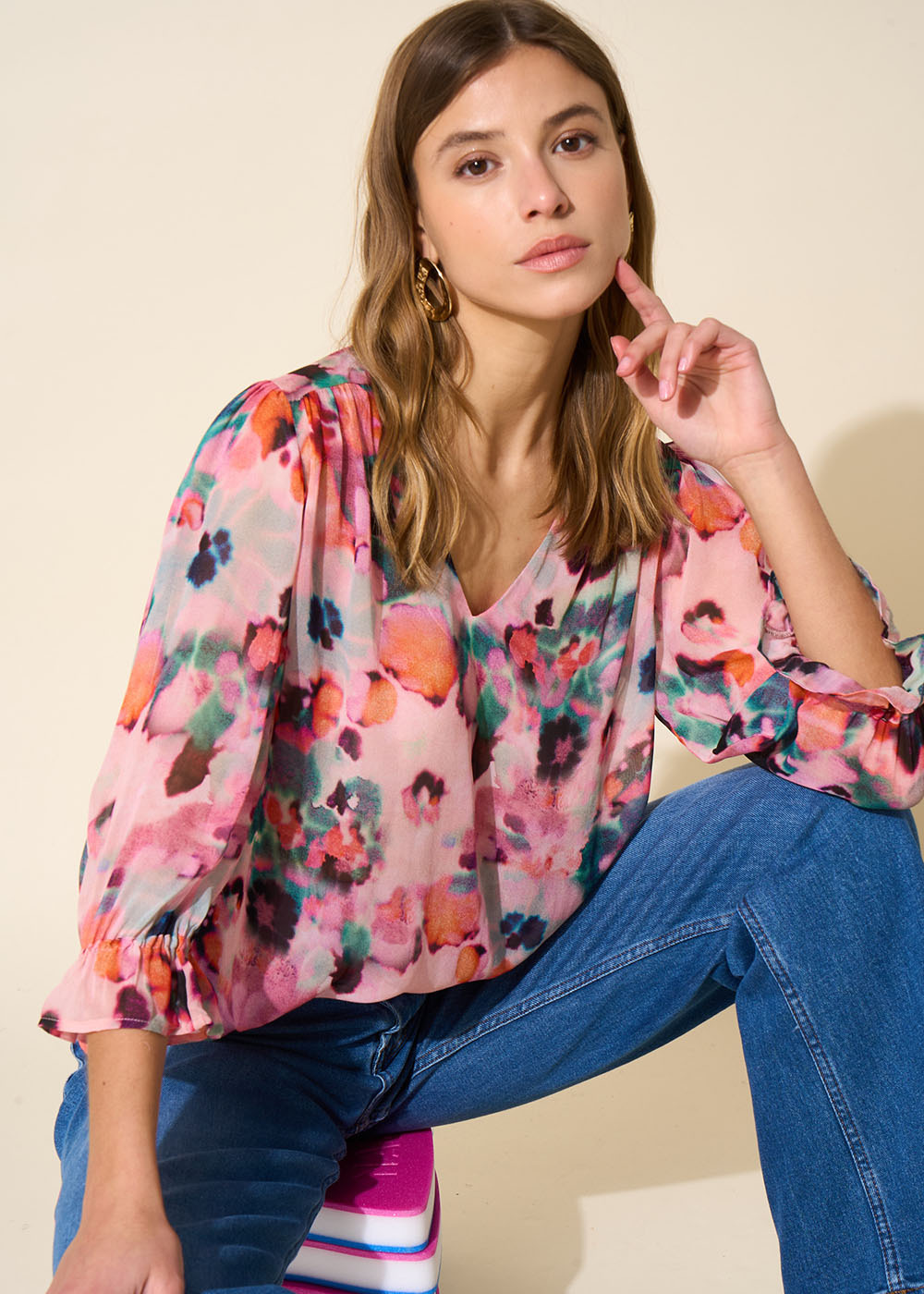 La blouse TOMALIA se distingue par son imprimée vitaminée. Elle détient un col V et des manches 3/4. Portez la avec votre jean favoris.