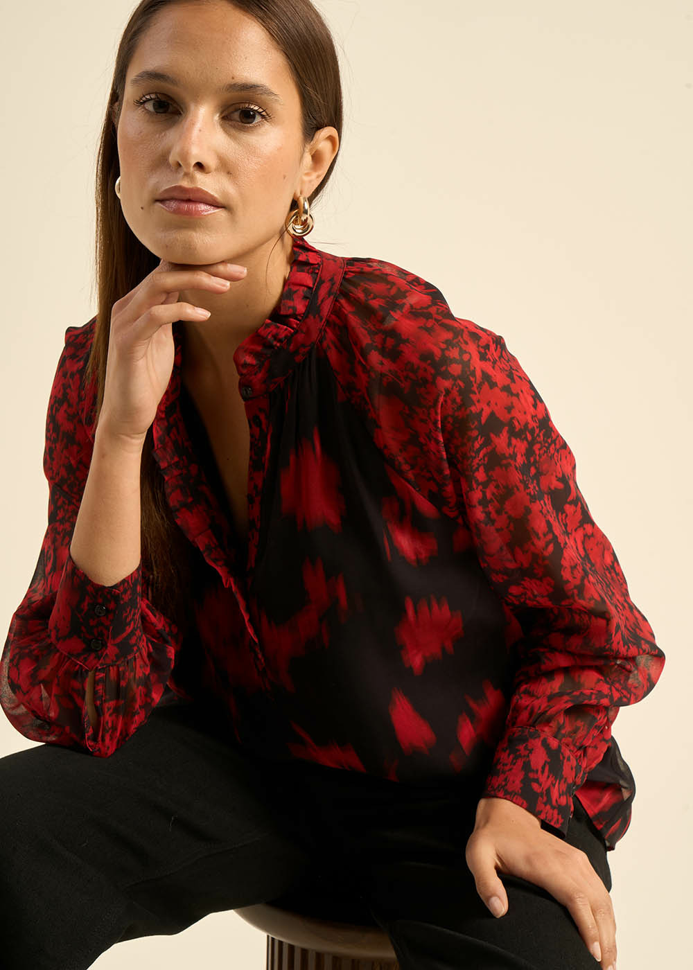 Blouse imprimée à col volanté