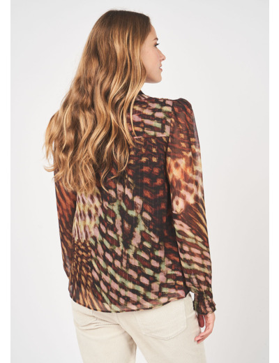 Découvrez la nouvelle blouse Sud express de la saison la BABATA. On craque pour son col tunisien ainsi que ses manches longues avec fronces en tête de manche et ses poignets smockés.