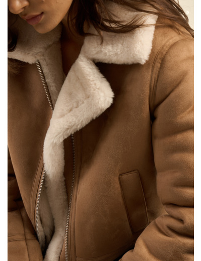 Laissez-vous séduire par le blouson MALVINO. L'extérieur de cette veste en fausse peau lainée présente un faux cuir daim, ajoutant une élégance et une texture douce à votre look. À l'intérieur, la fausse fourrure offre chaleur et confort. Le zip central à l'avant permet une fermeture pratique et ajustable. Que ce soit pour une journée décontractée ou pour ajouter une couche de chaleur et de style à une tenue plus habillée, cette veste combine texture et confort avec brio.