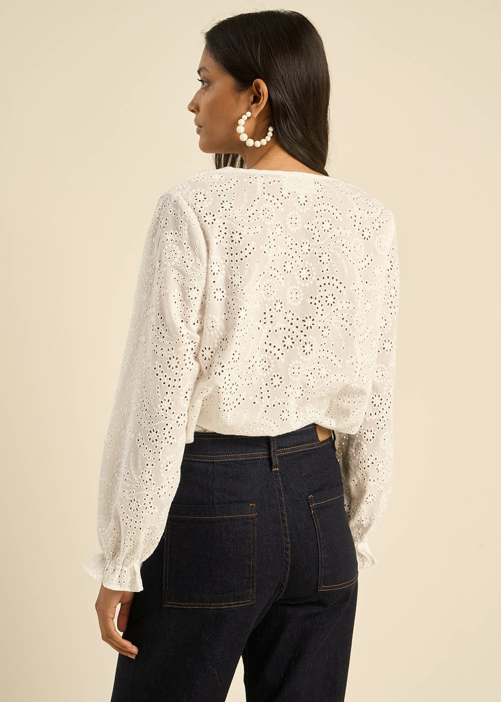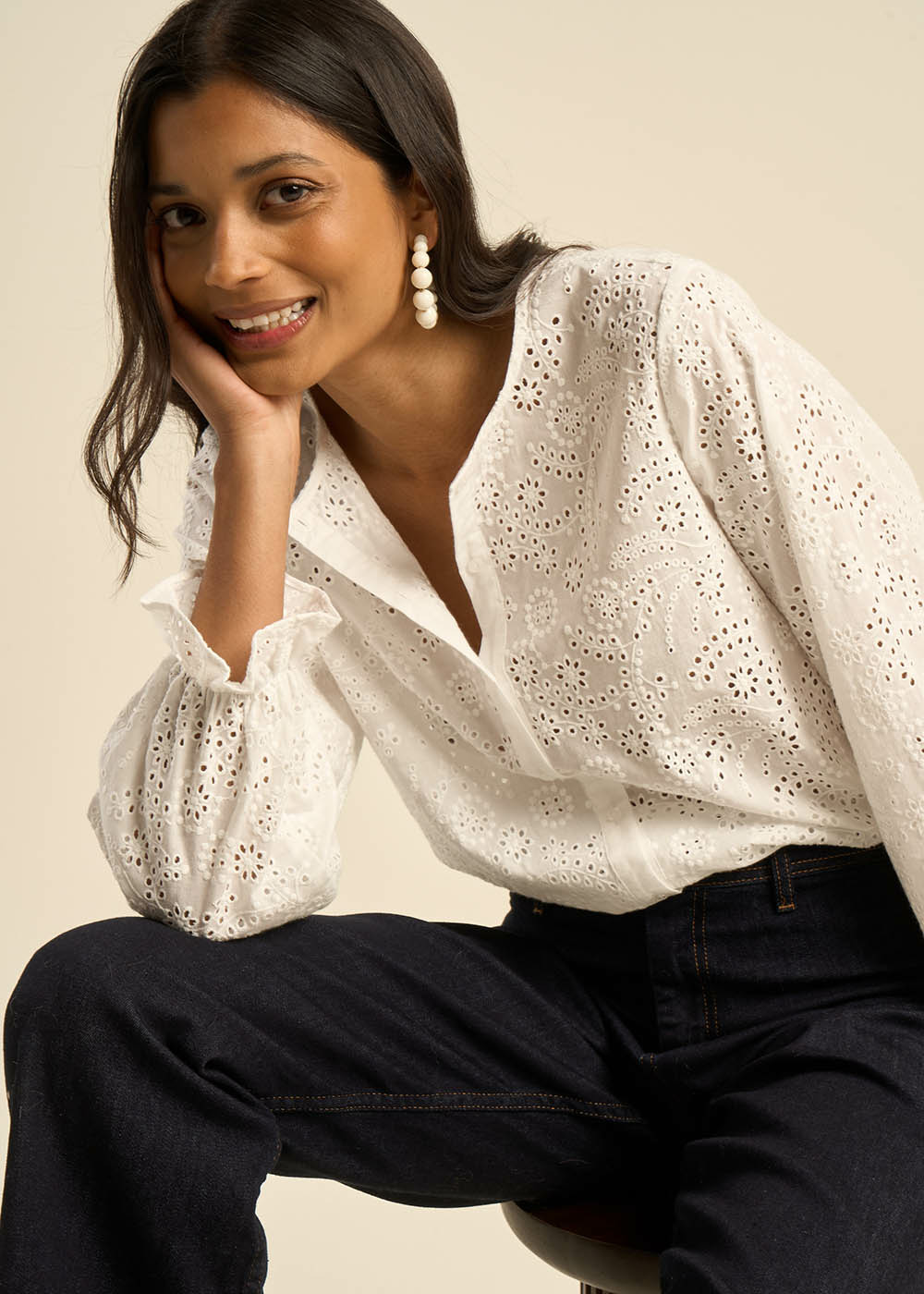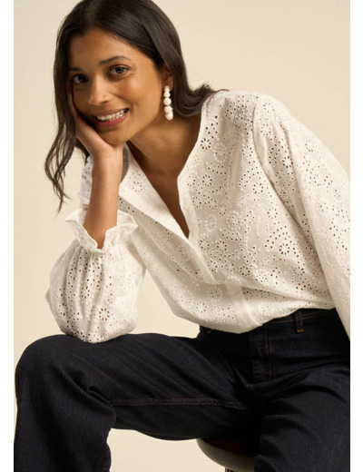 Découvrez la chemise CELIMA en broderie anglaise, une véritable ode à l'élégance et à la féminité. Confectionnée en 100% coton, elle vous enveloppera de douceur. Son design sans col et ses manches longues qui se finissent par un élastique vous apportent une touche de raffinement. Laissez vous séduire par cette pièce unique, parfaite pour une allure chic et intemporelle.