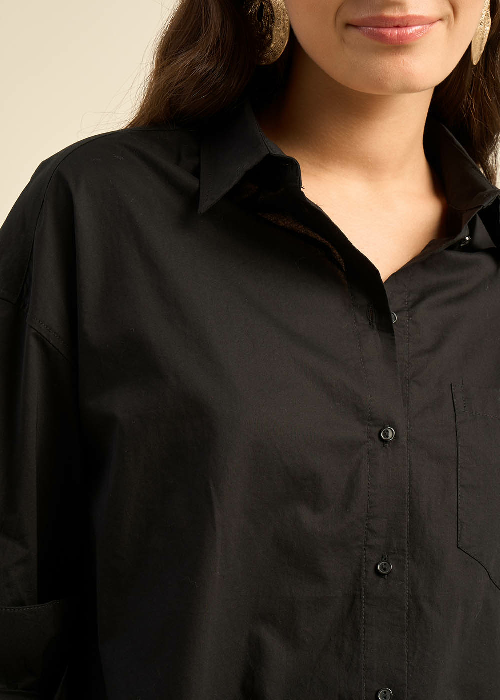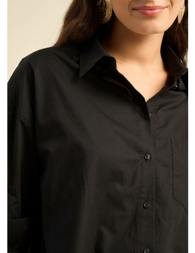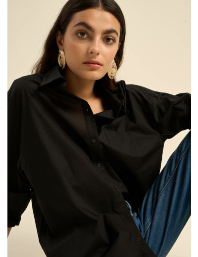 La chemise blanche CELISE a une coupe oversize. Cette chemise en 100% Coton est un basique incontournable pour une garde-robe moderne. Elle présente une poche poitrine et des manches tombantes, alliant confort et style pour un look décontracté chic.