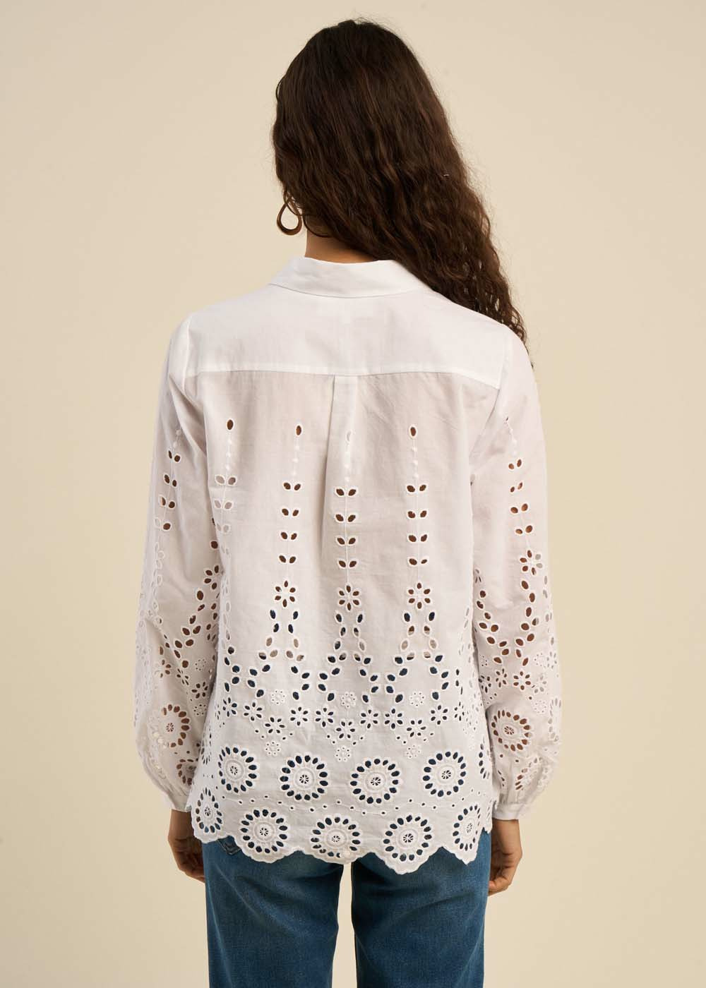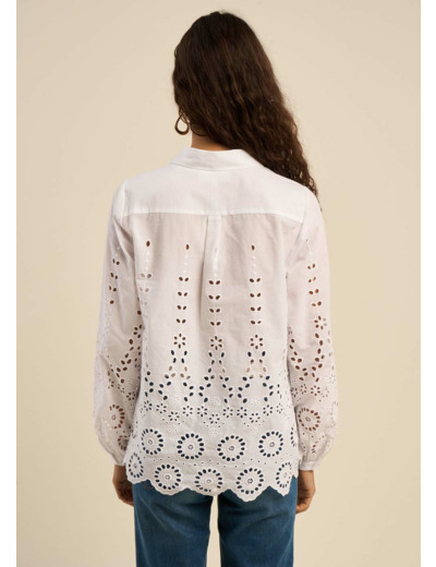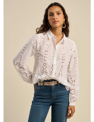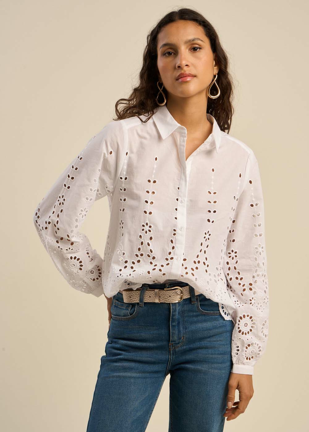 Apportez une touche de charme romantique à votre garde-robe avec la chemise COBALY. Confectionnée en broderie anglaise délicate, cette pièce intemporelle séduit par son allure oversize et sa longueur élégante. Son col chemise classique et ses manches légèrement bouffantes ajoutent une touche de féminité, tandis que le bas festonné apporte une finition raffinée. Idéale pour un look chic et léger, cette chemise est parfaite pour les journées où style et confort vont de pair.