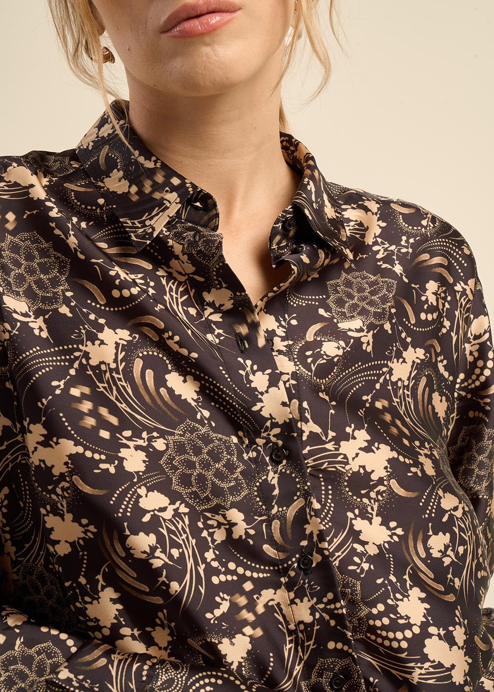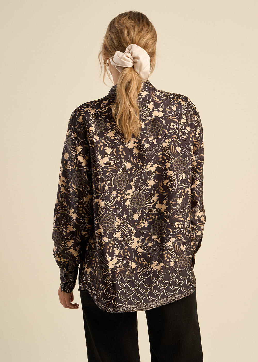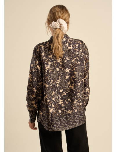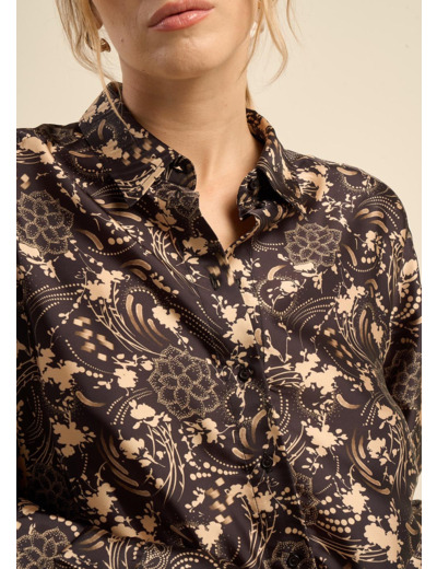 CACHAN : Une chemise en satin, idéale pour un style à la fois chic et décontracté. Son imprimé floral délicat, sur un fond noir profond, crée un contraste saisissant. Le satin doux et fluide épouse les formes avec élégance. Parfaite pour les journées ensoleillées, elle se portera aussi bien avec un jean qu'avec une jupe.