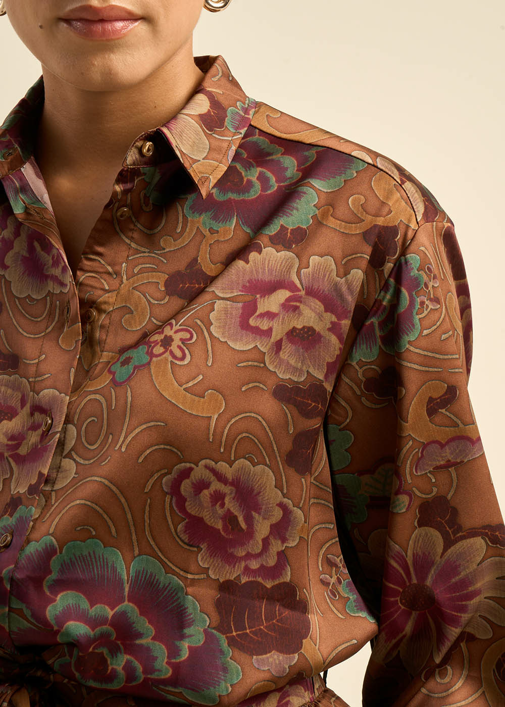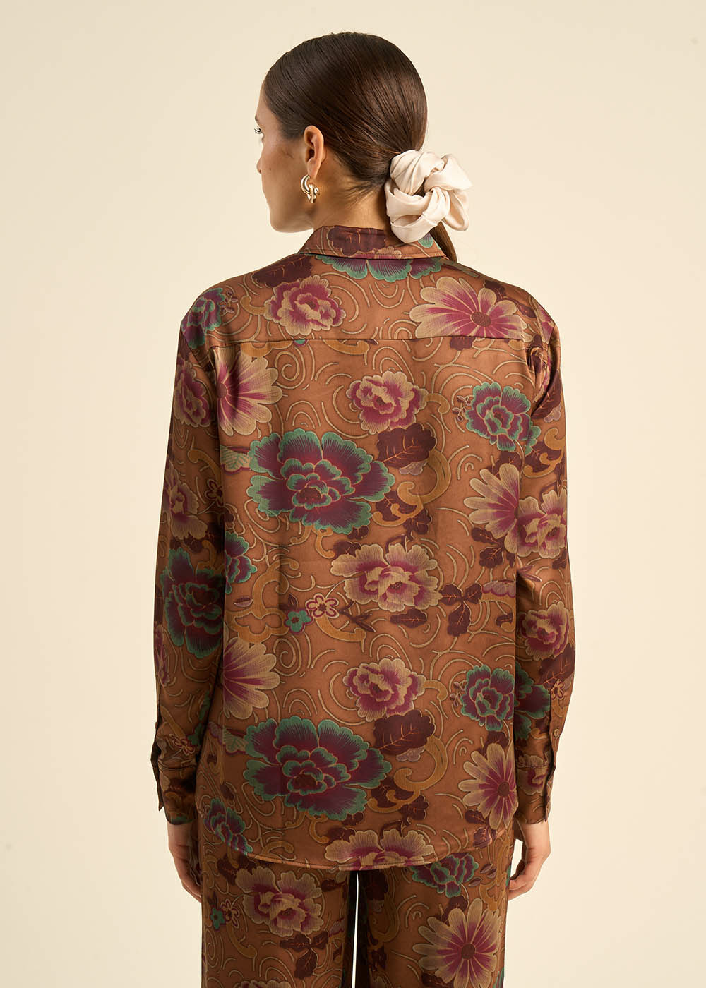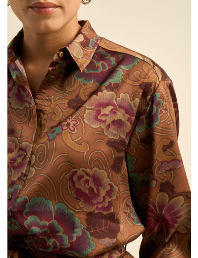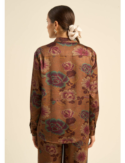 La chemise CASHIBA en satin polyester imprimé floral allie élégance et confort. Son style oversize, ses manches longues et son col classique en font une pièce raffinée. Parfaite en duo avec le pantalon PASHIBA, elle compose un ensemble harmonieux et sophistiqué. Ajoutez une touche de poésie florale à votre garde-robe avec la chemise CASHIBA.