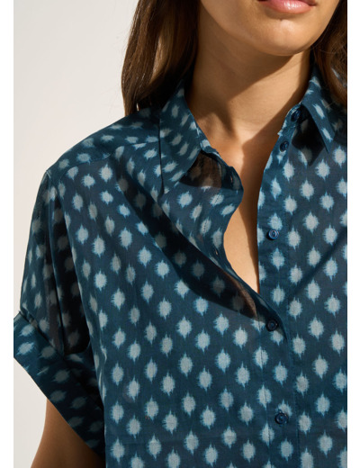 La chemise CIBALT revisite le style casual avec une touche d’originalité. Son imprimé graphique et sa coupe longue en font une pièce forte et facile à porter.