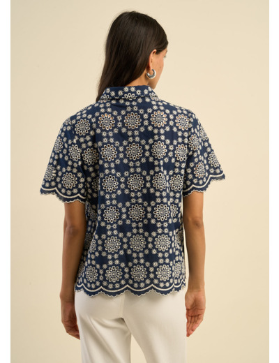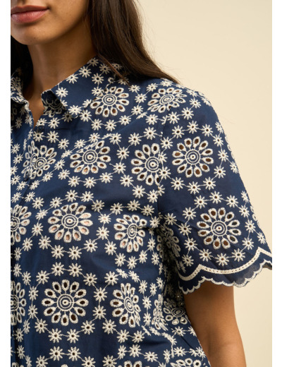 Apportez une touche d’élégance intemporelle à votre garde-robe avec la chemise CODERA, un classique revisité avec originalité. Confectionnée en broderie anglaise à motif floral contrasté, elle séduit par son raffinement et son jeu de textures délicates. Sa coupe droite et son col chemise lui confèrent une allure sophistiquée, tandis que ses manches courtes et ses finitions festonnées aux manches et au bas ajoutent une touche de caractère.