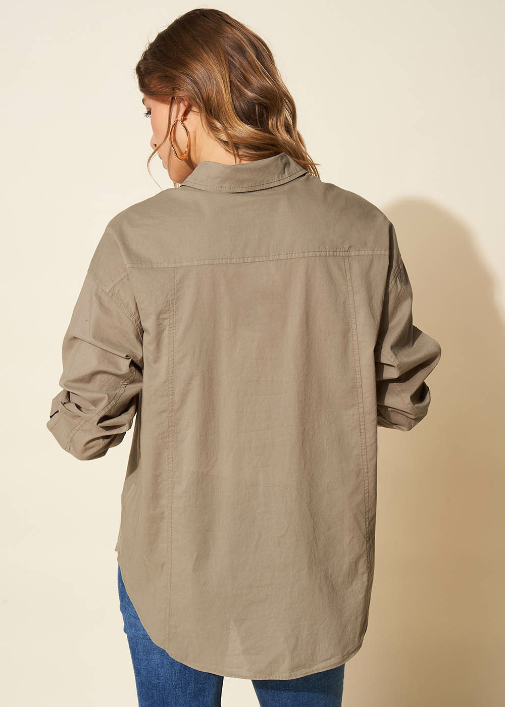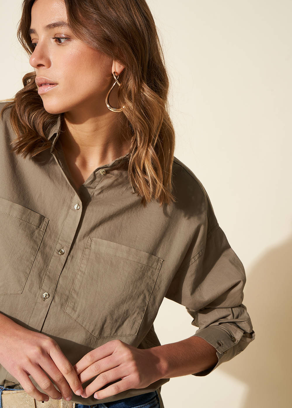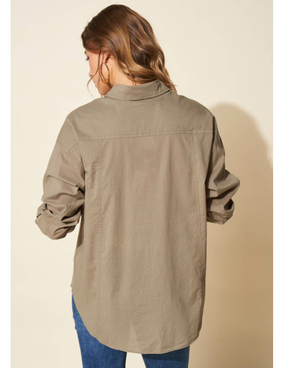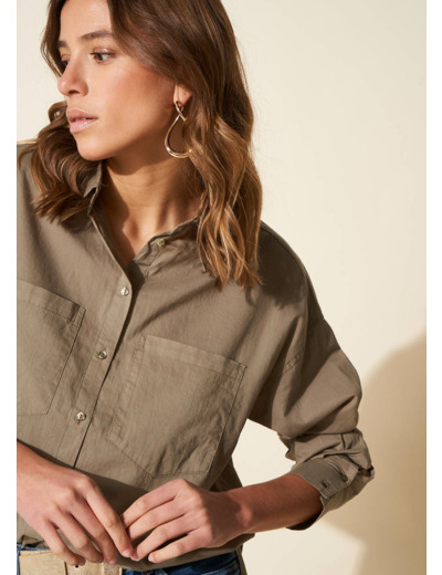 La chemise CHARLISE se présente en coupe oversize agrémentée de poches plaquées à l'avant. Ses manches longues sont pourvues d'un large poignet à trois boutons et d'une fente élégante. Elle comporte également des empiècements aux épaules et au dos ajoutant une touche distinctive à son design.