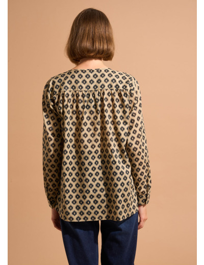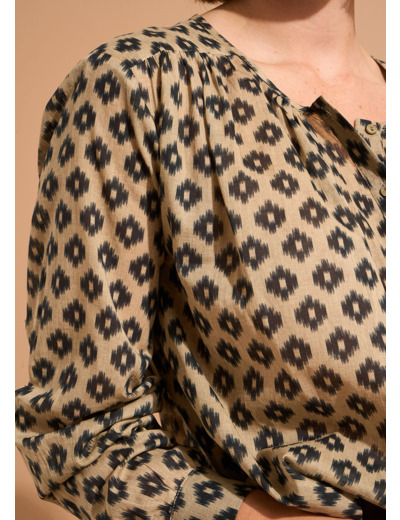 La chemise CALMIE joue la carte du raffinement avec ses fronces délicates et son imprimé original. Une coupe fluide et féminine, idéale pour twister vos tenues du quotidien.