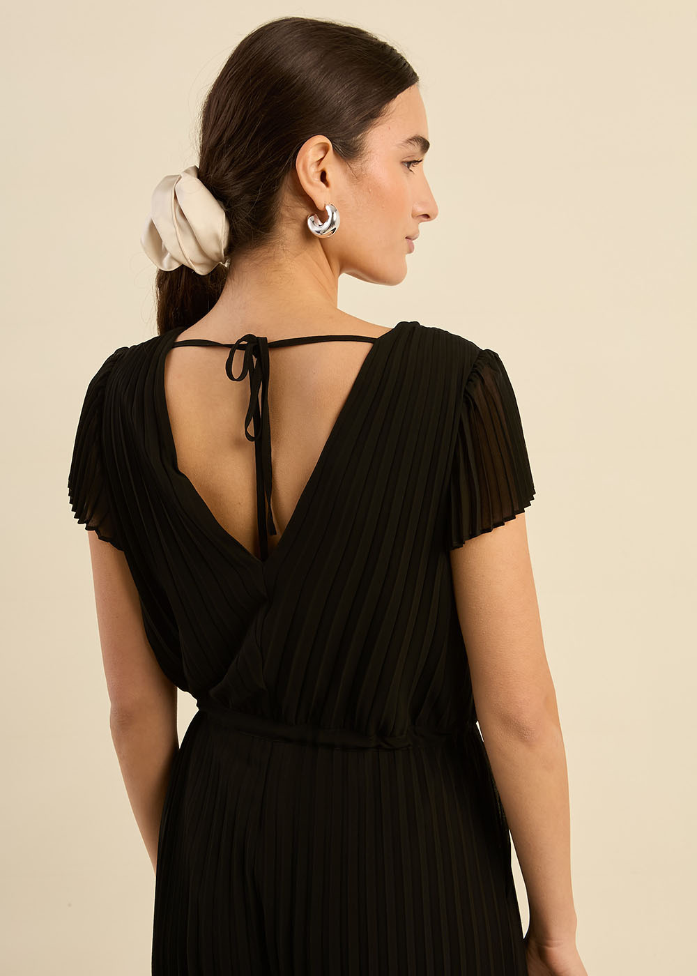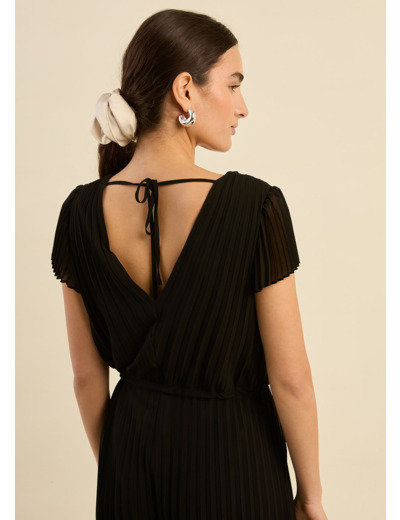 La combinaison CANALINA allie modernité et féminité grâce à sa coupe fluide et ses délicats détails plissés. Son encolure en V, aussi bien à l’avant qu’au dos, sublime le port de tête et apporte une touche sophistiquée.