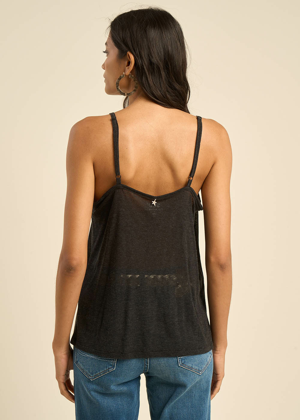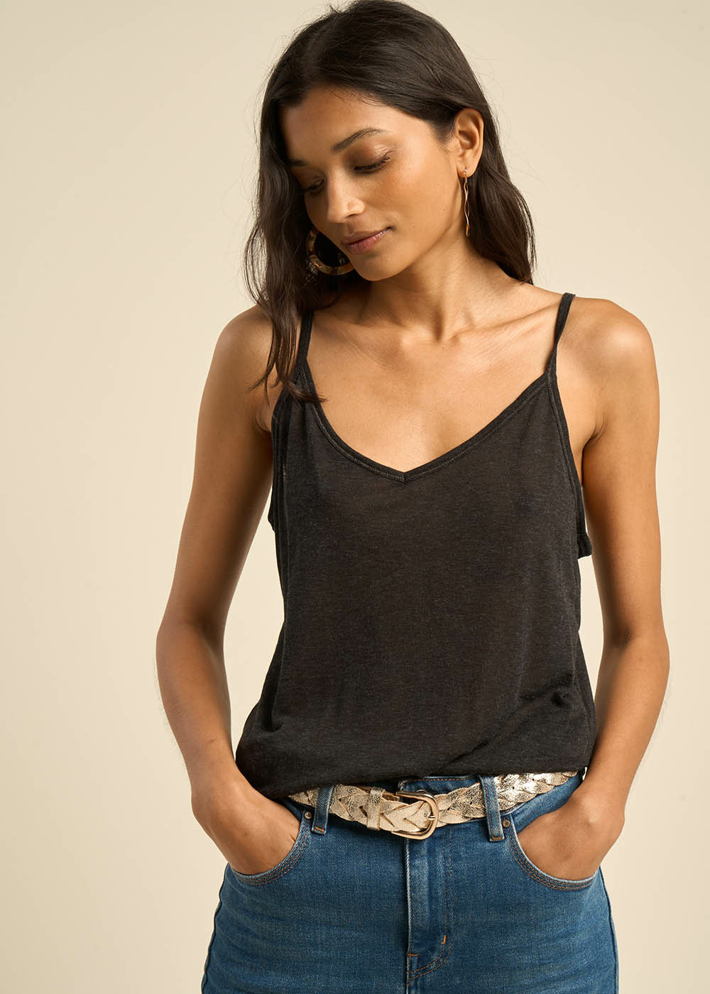 Laissez-vous séduire par le débardeur DAMIA en voile de laine, un vêtement léger et raffiné qui allie confort et élégance. Ce débardeur, muni de fines bretelles et d'un col en V, est idéal pour les journées chaudes ou comme sous-vêtement discret. Pour les saisons plus fraîches, il se marie parfaitement avec une veste ou un pull.