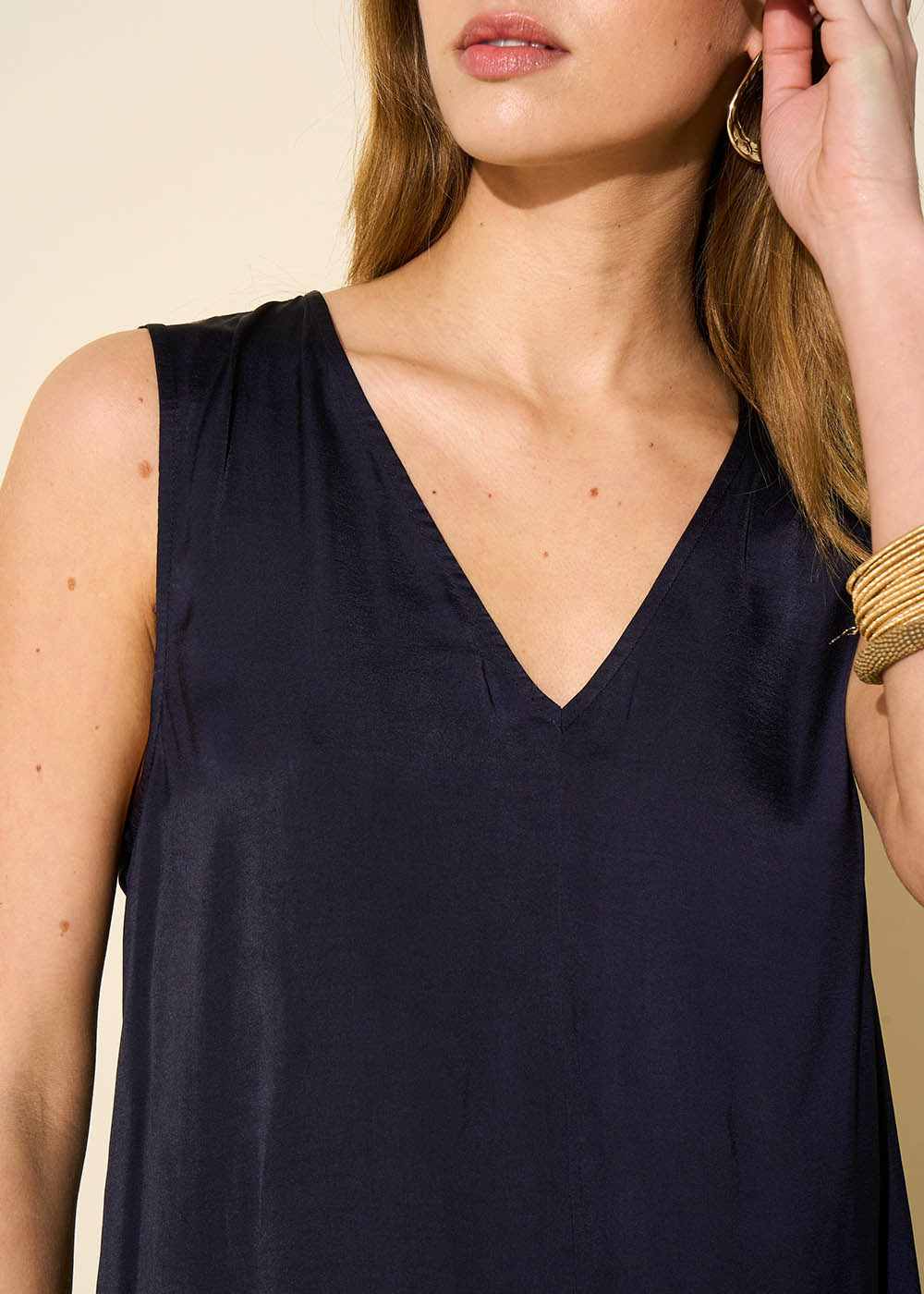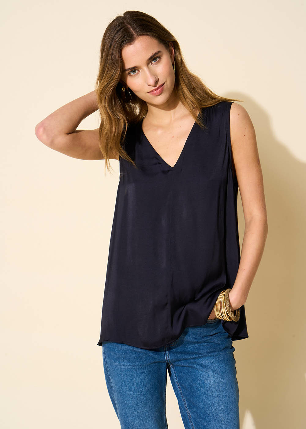 Le débardeur TOBIMAT se caractérise par sa combinaison de matières : un devant satiné associé à un dos en jersey. Il arbore un col en V et est dépourvu de manches. Associez-le à votre jean en denim préféré pour un look parfait.